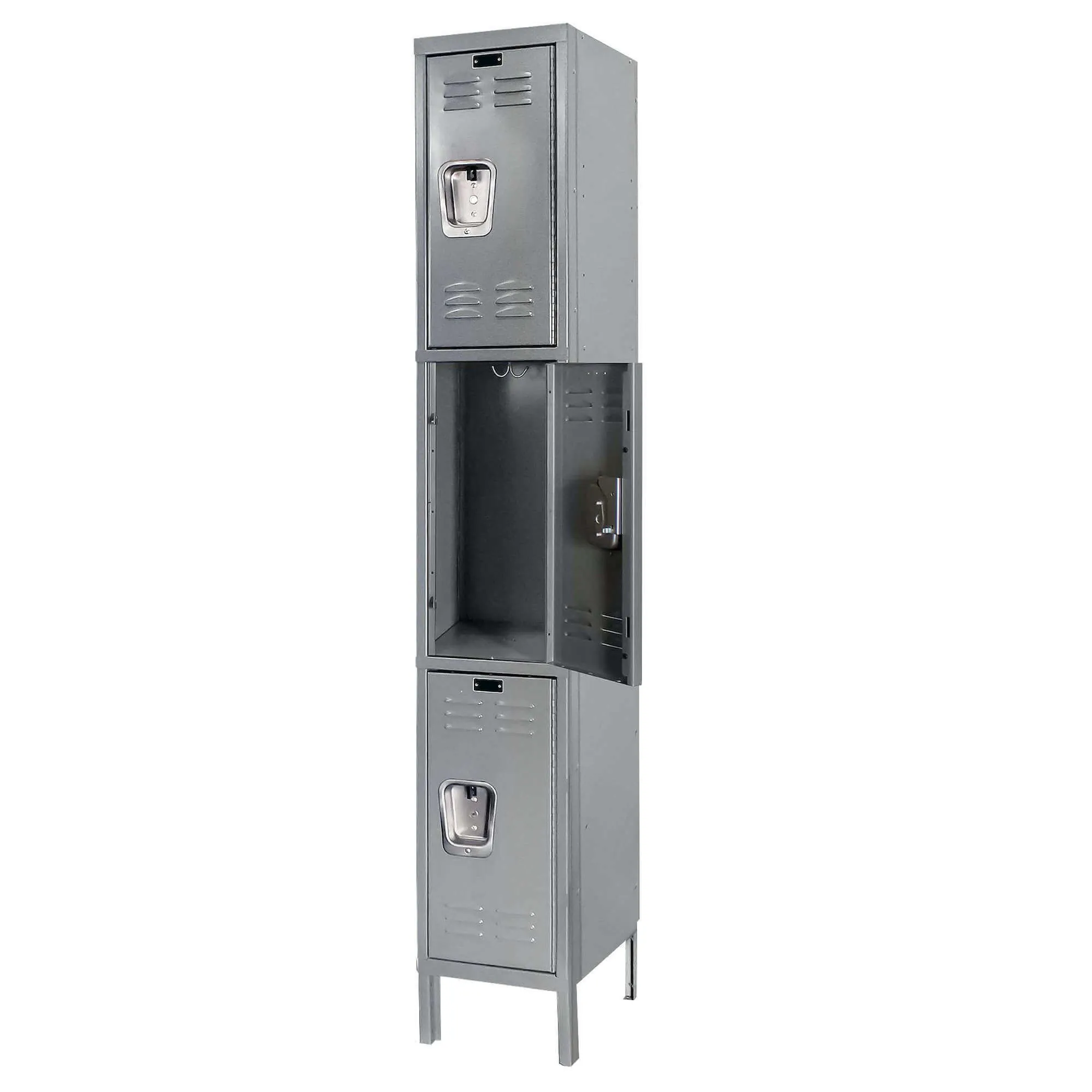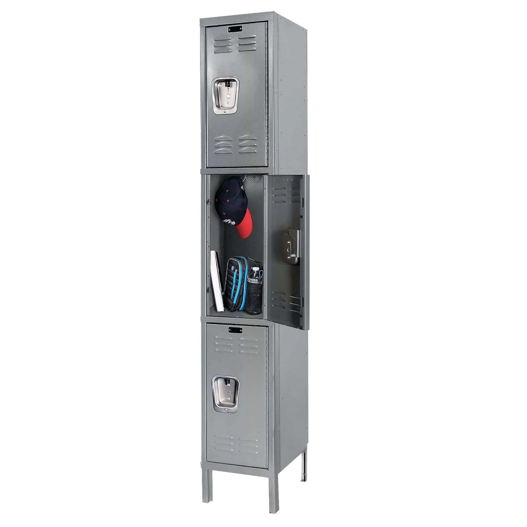 These three wide / three tier wardrobe lockers house clothing, accessories, and individual items. They are frequently used in homes, offices, gyms, and schools so that people may store their belongings securely. A popular choice for various settings due to their durability, security, and versatility. Great for storing smaller items in environments where space is limited.