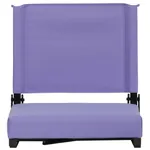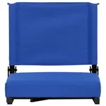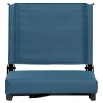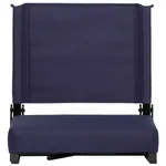 This portable folding chair has black aluminum frame finish and canvas seat and back cover. It is available in eight colors: Black, Blue, Navy, Red, Purple, Teal, Maroon and Orange.