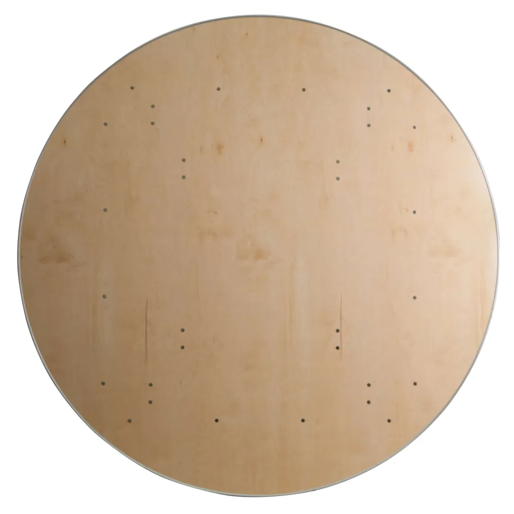 This portable folding table has silver powder coated locking wishbone legs and birchwood hardwood surface with aluminum edge band. The table freatures quadruple coated polyurethane varnish top and double coated polyurethane varnish bottom.