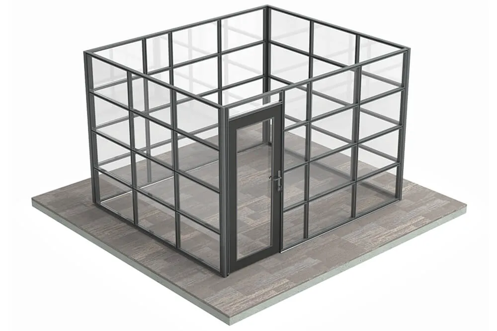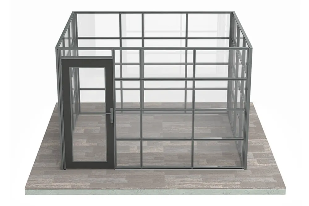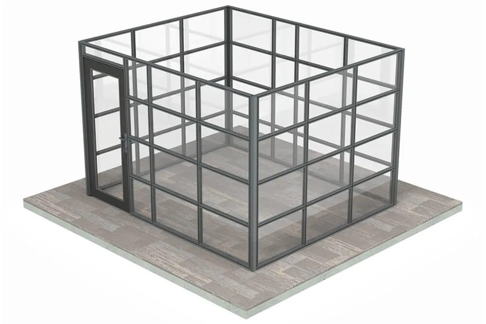 Ideal for contemporary workplaces, this private glass office cube offers a flexible and stylish solution with a clean and professional look, making your office space both functional and visually appealing. Choose these all glass office systems to create an environment that fosters productivity and innovation