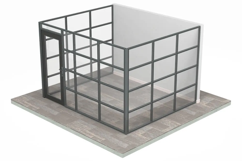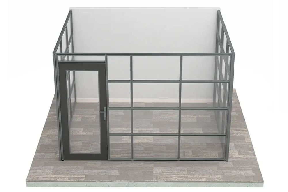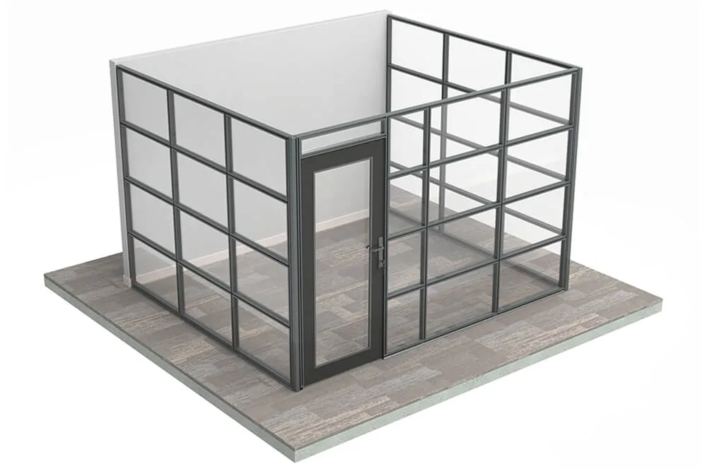 Modernize your office with the Glass Cubicle Office system, featuring glass office fronts and sides that promote a trendy, open and collaborative atmosphere. The glass cubicle panels provide a sleek and contemporary look that enhances the aesthetic appeal of any private workspaces, meeting rooms, and collaborative areas.
