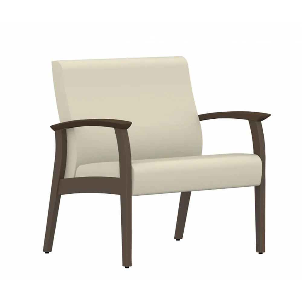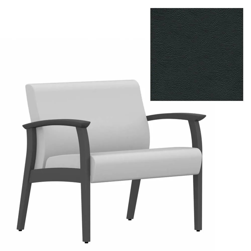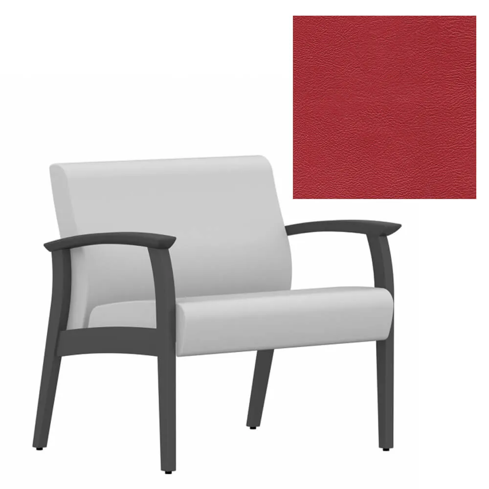 This bariatric guest chair is covered with vinyl upholstery that is available in Black, Cool Grey, Dark Chocolate, Espresso, Green, Navy, Orange, Red Barn and White on a Shaker Cherry wood frame that can blend in to any work environment.