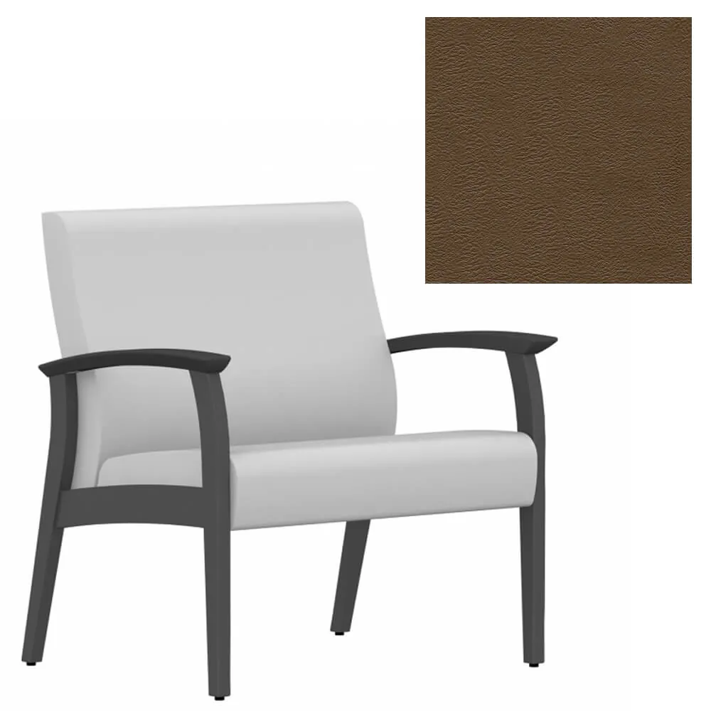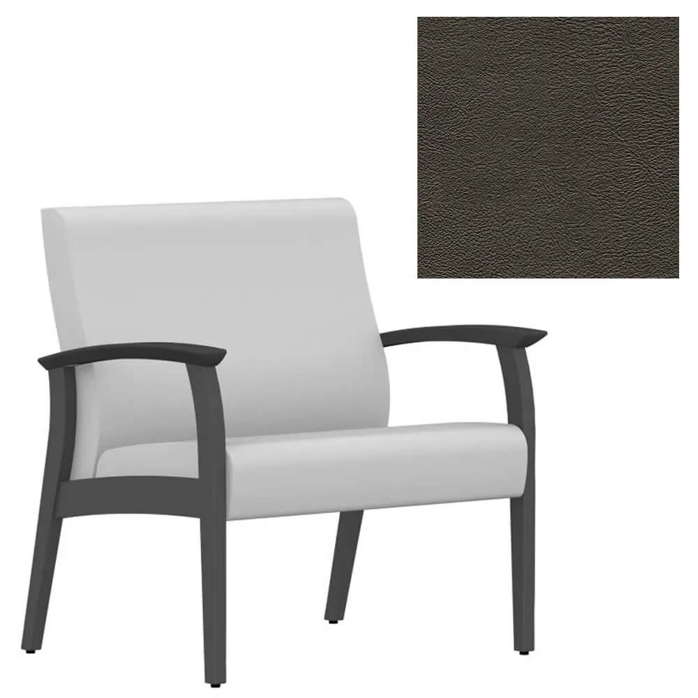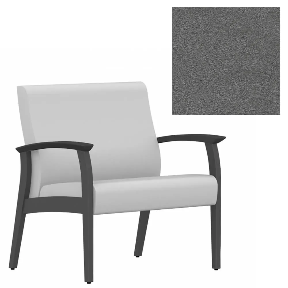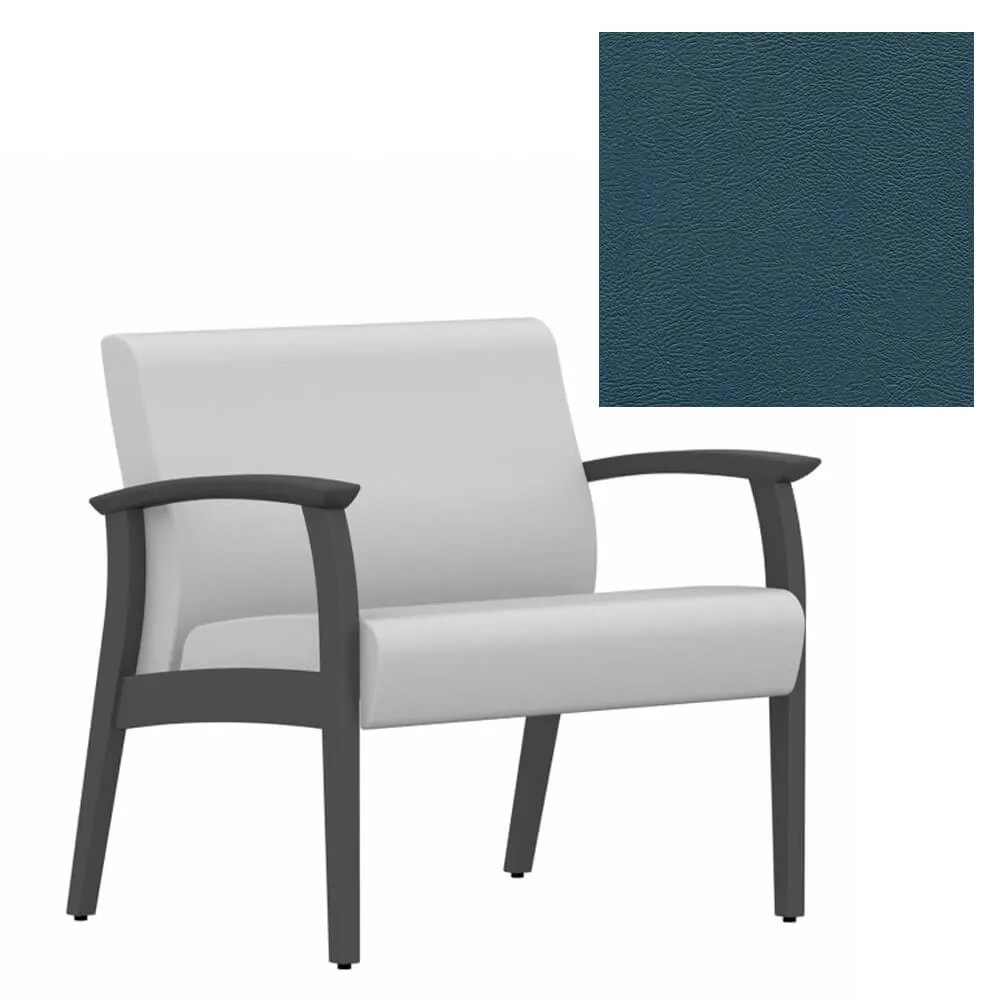 This bariatric guest chair is covered with vinyl upholstery that is available in Black, Cool Grey, Dark Chocolate, Espresso, Green, Navy, Orange, Red Barn and White on a Shaker Cherry wood frame that can blend in to any work environment.