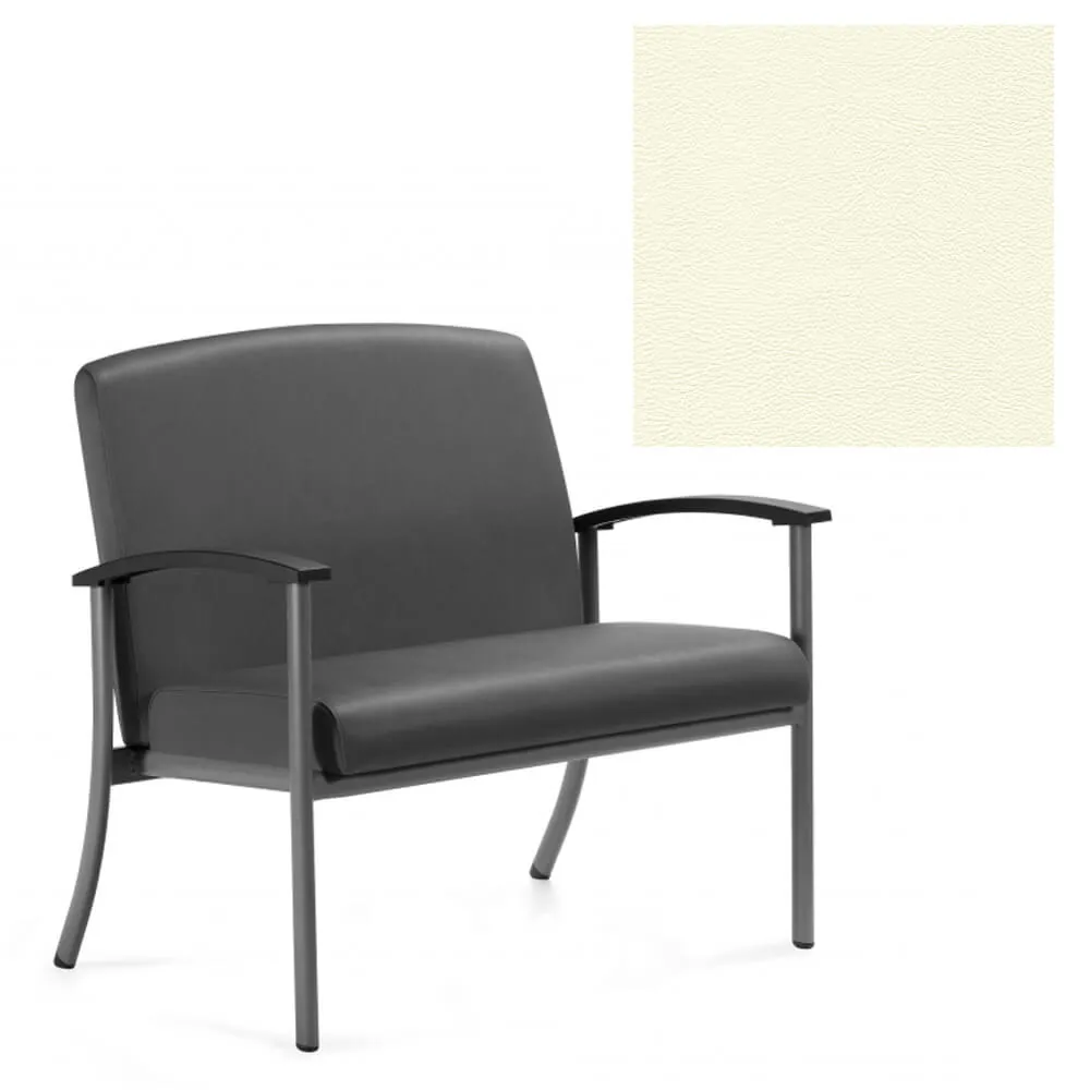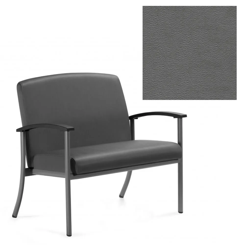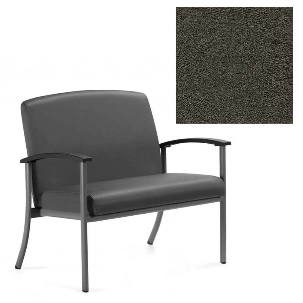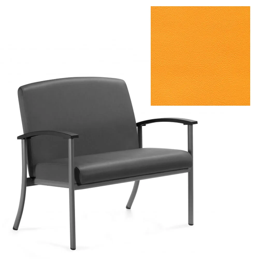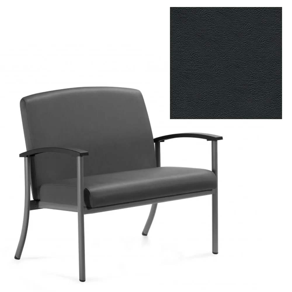 This bariatric guest chair is covered with vinyl upholstery that is available in Black, Cool Grey, Dark Chocolate, Espresso, Green, Navy, Orange, Red Barn and White on a Kalua metal frame with non-marking glides and black armrests that can blend in to any work environment.