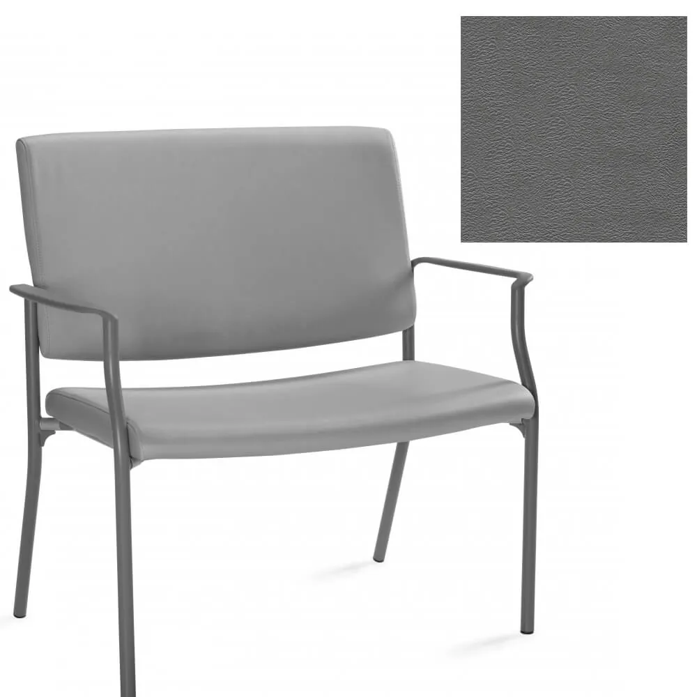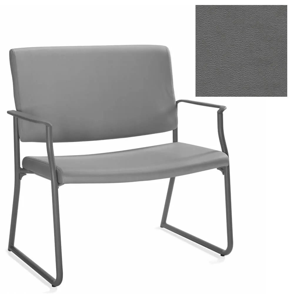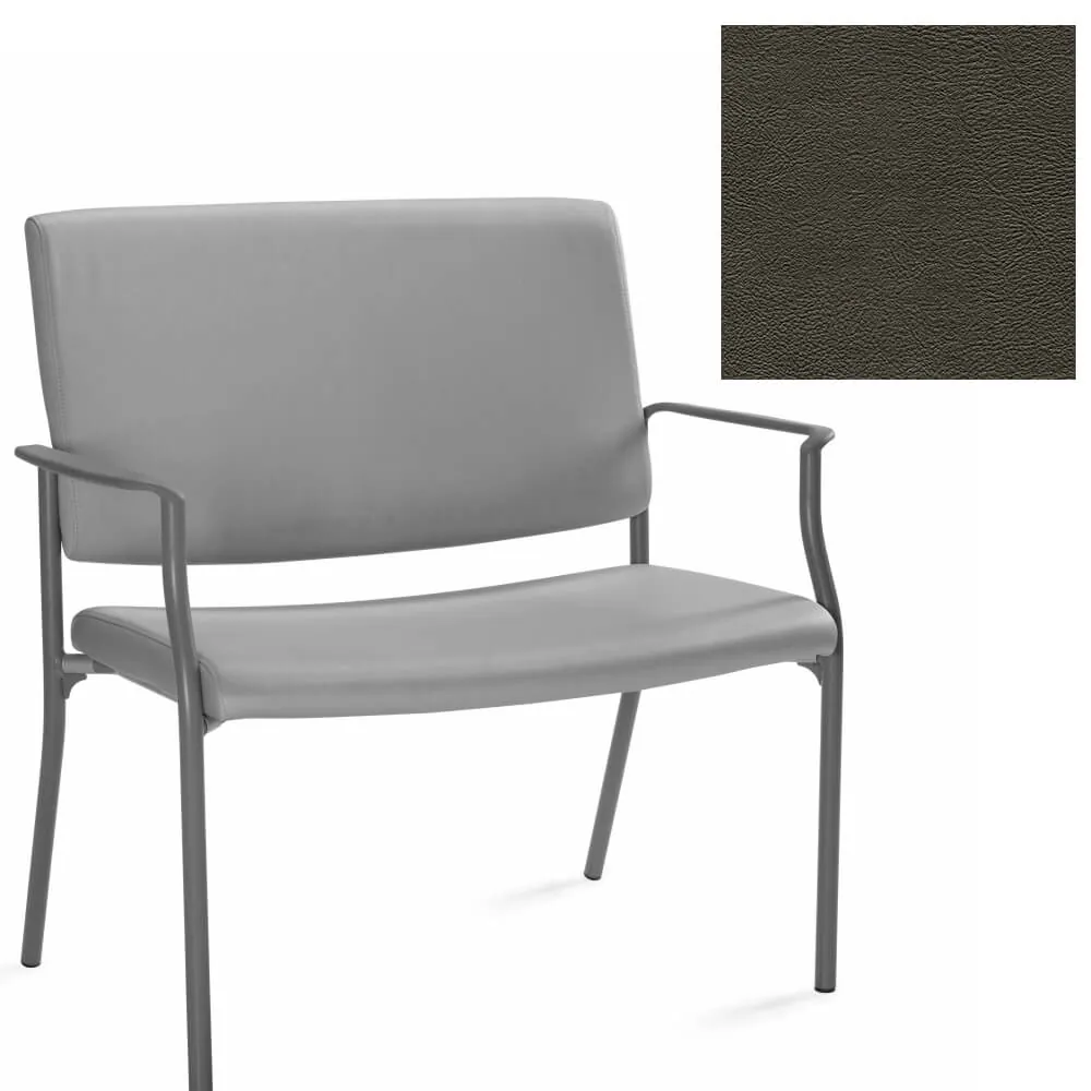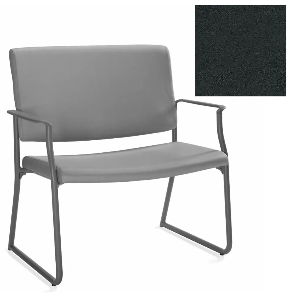 This bariatric guest chair is covered with vinyl upholstery that is available in Black, Cool Grey, Dark Chocolate, Espresso, Green, Navy, Orange, Red Barn and White on a Kalua metal frame with non-marking glides and black armrests that can blend in to any work environment.