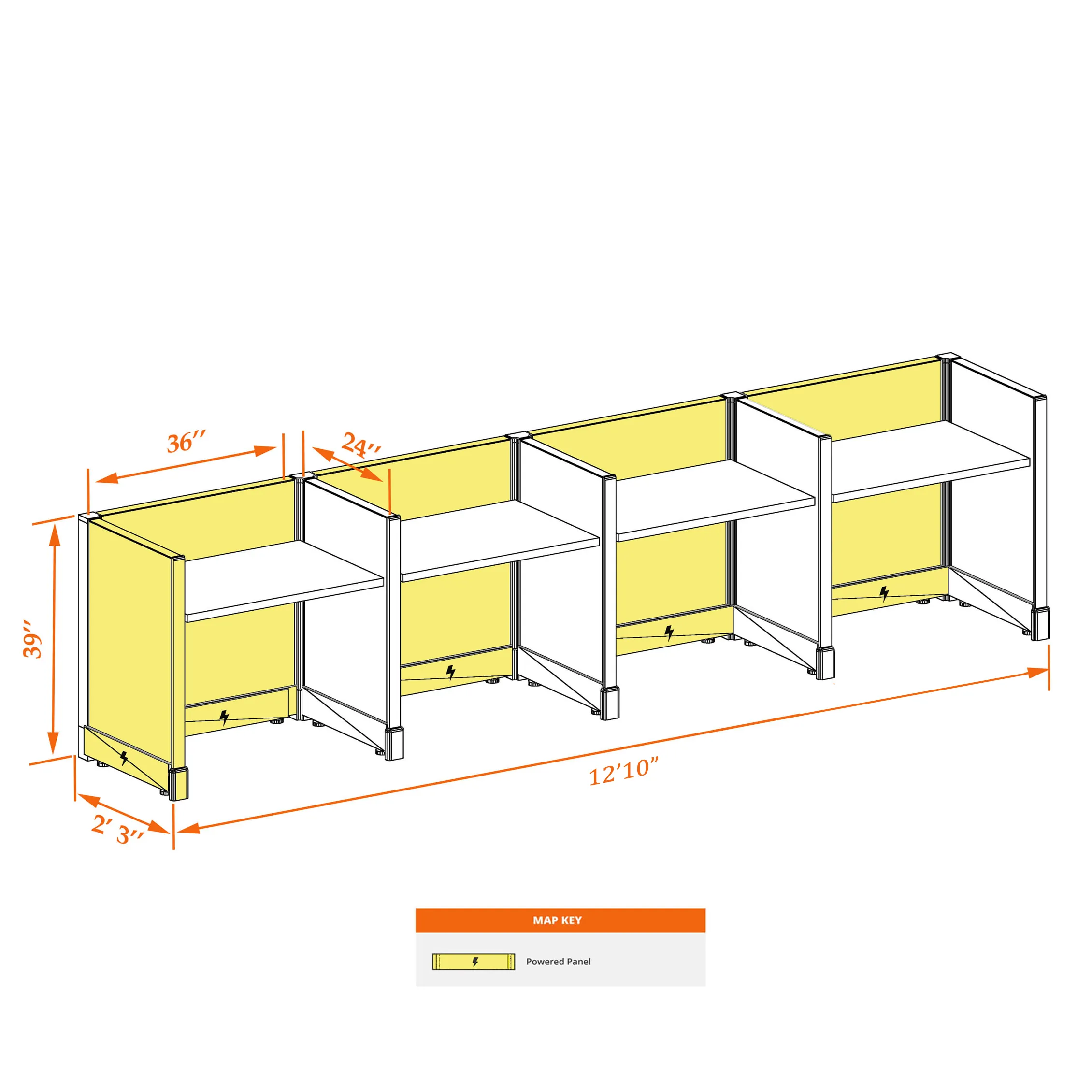 Small Cubicles 39H 4pack Inline Powered