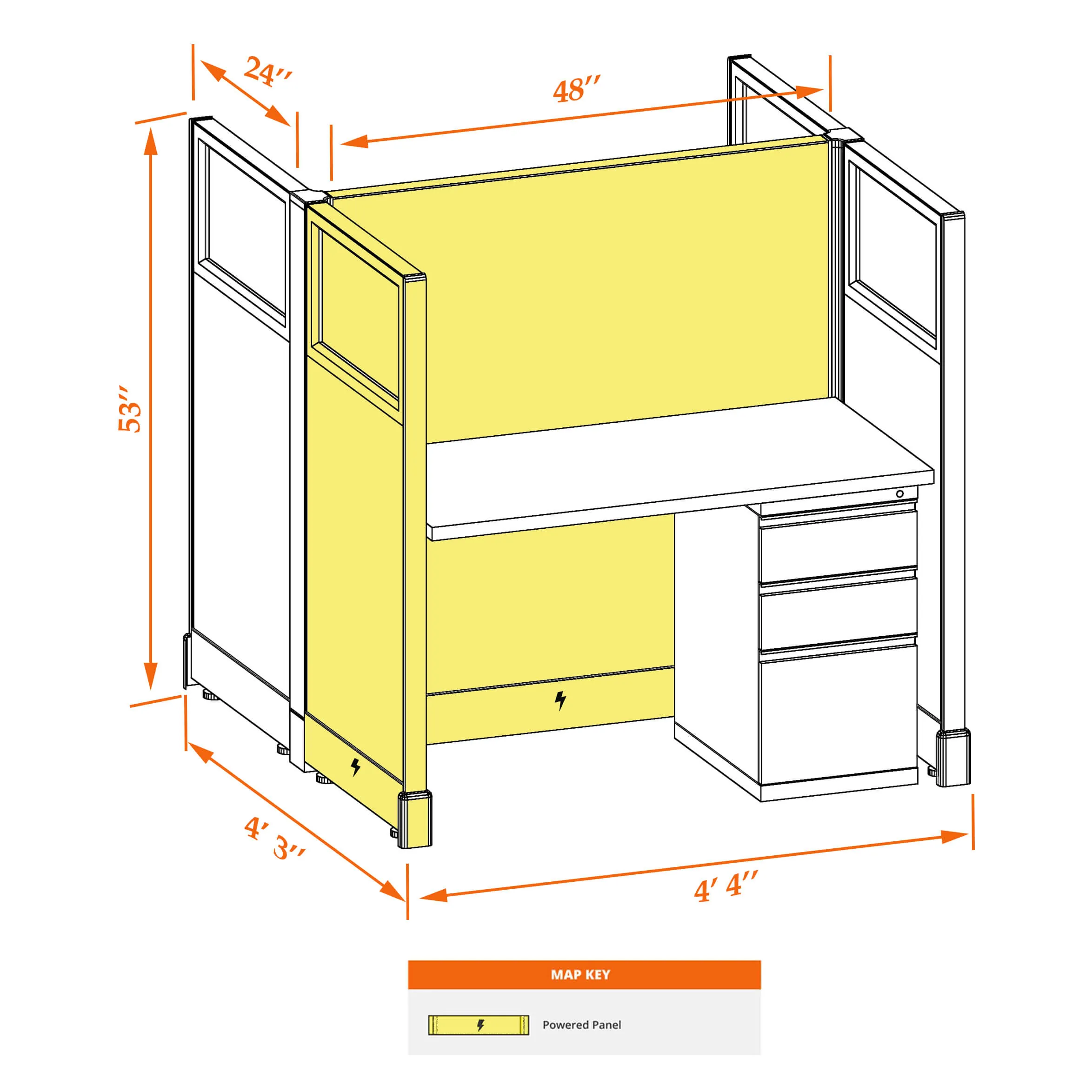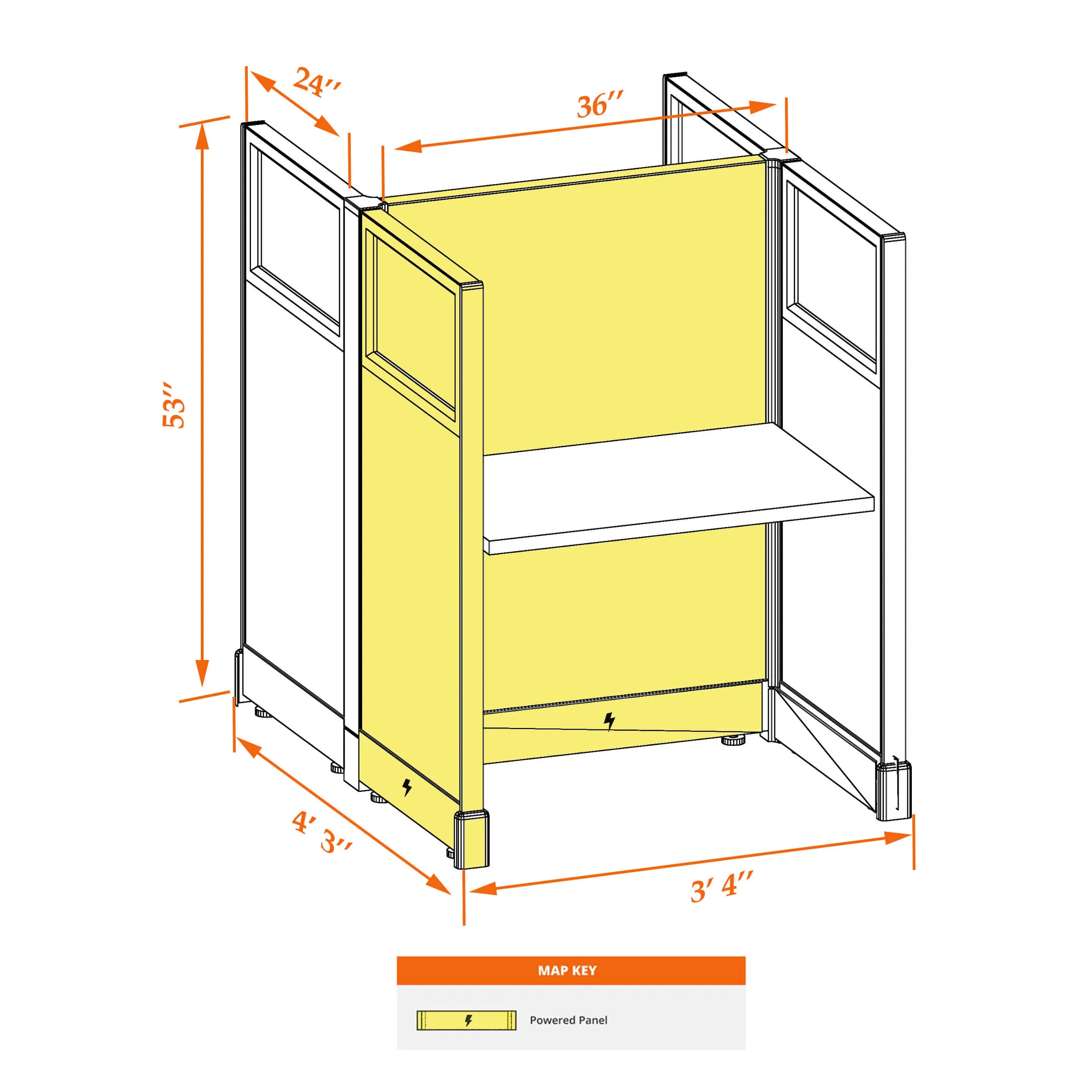 This particular configuration includes 2 cubicle with 53 inch panel height. For workspace area you can choose 2’x4’, 2’x3’, 3’x4’ or 4’x4’ depending on available space. These cubicles are powered, so you can plug your electronic devices directly into the panel power sockets.