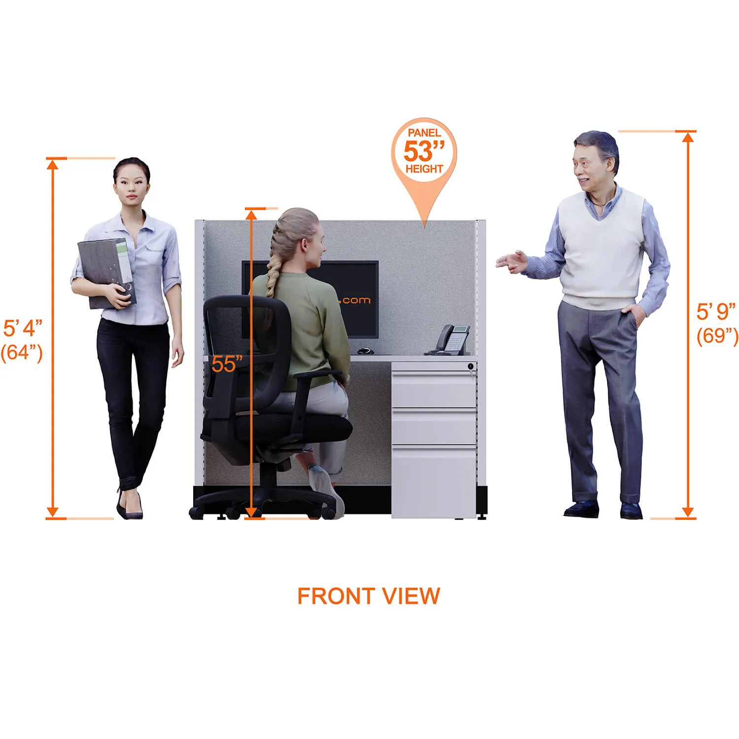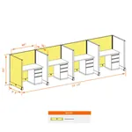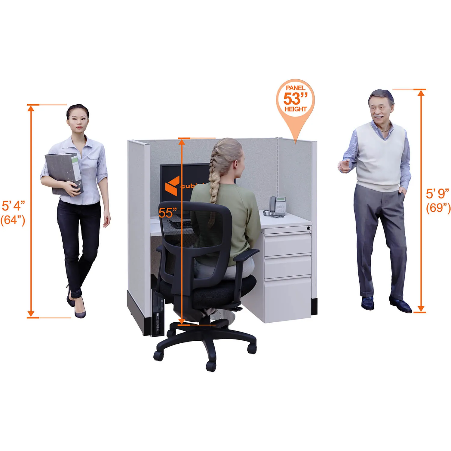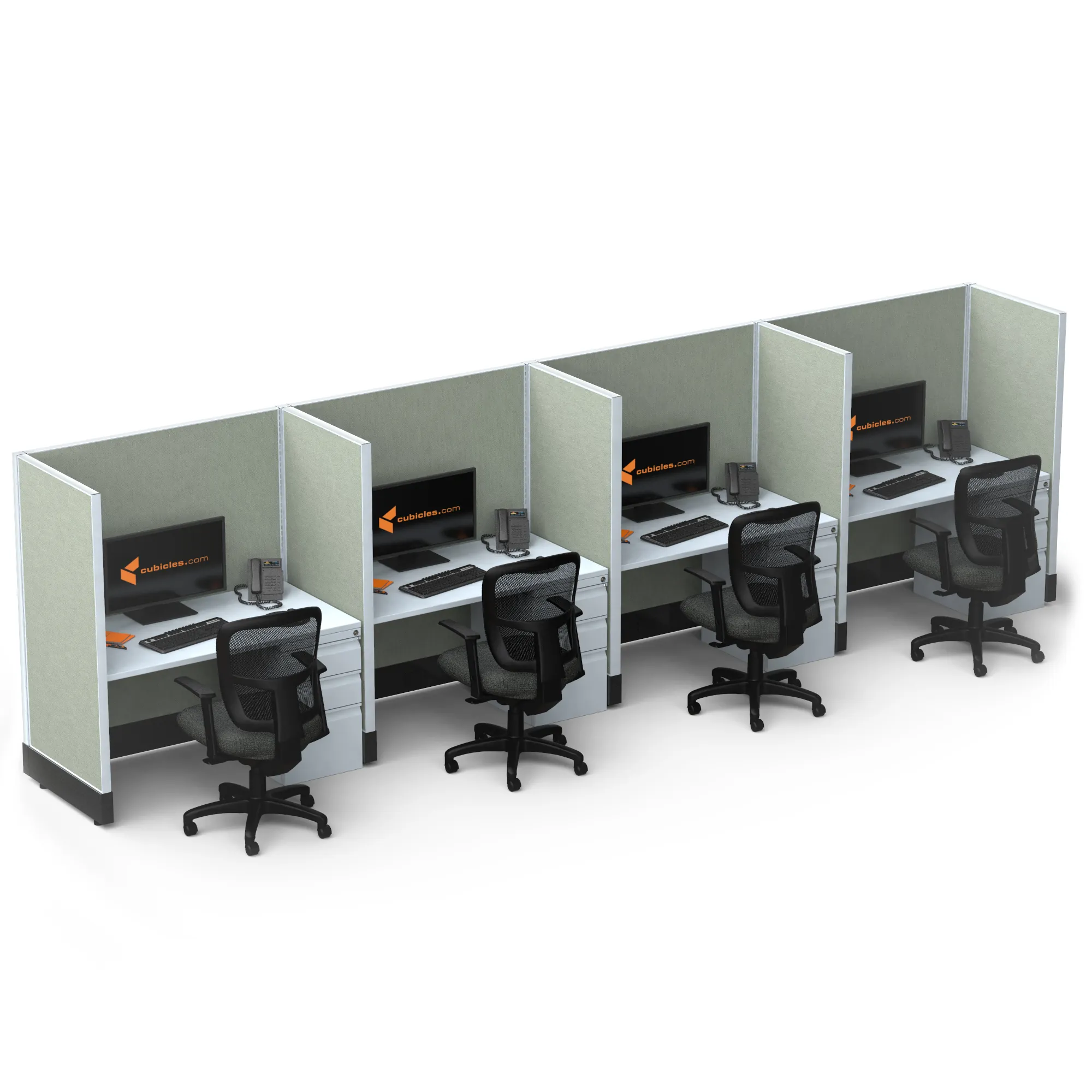 This particular configuration includes 4 cubicle with 53 inch panel height. For workspace area you can choose 2’x4’, 2’x3’, 3’x4’ or 4’x4’ depending on available space. These cubicles are powered, so you can plug your electronic devices directly into the panel power sockets.