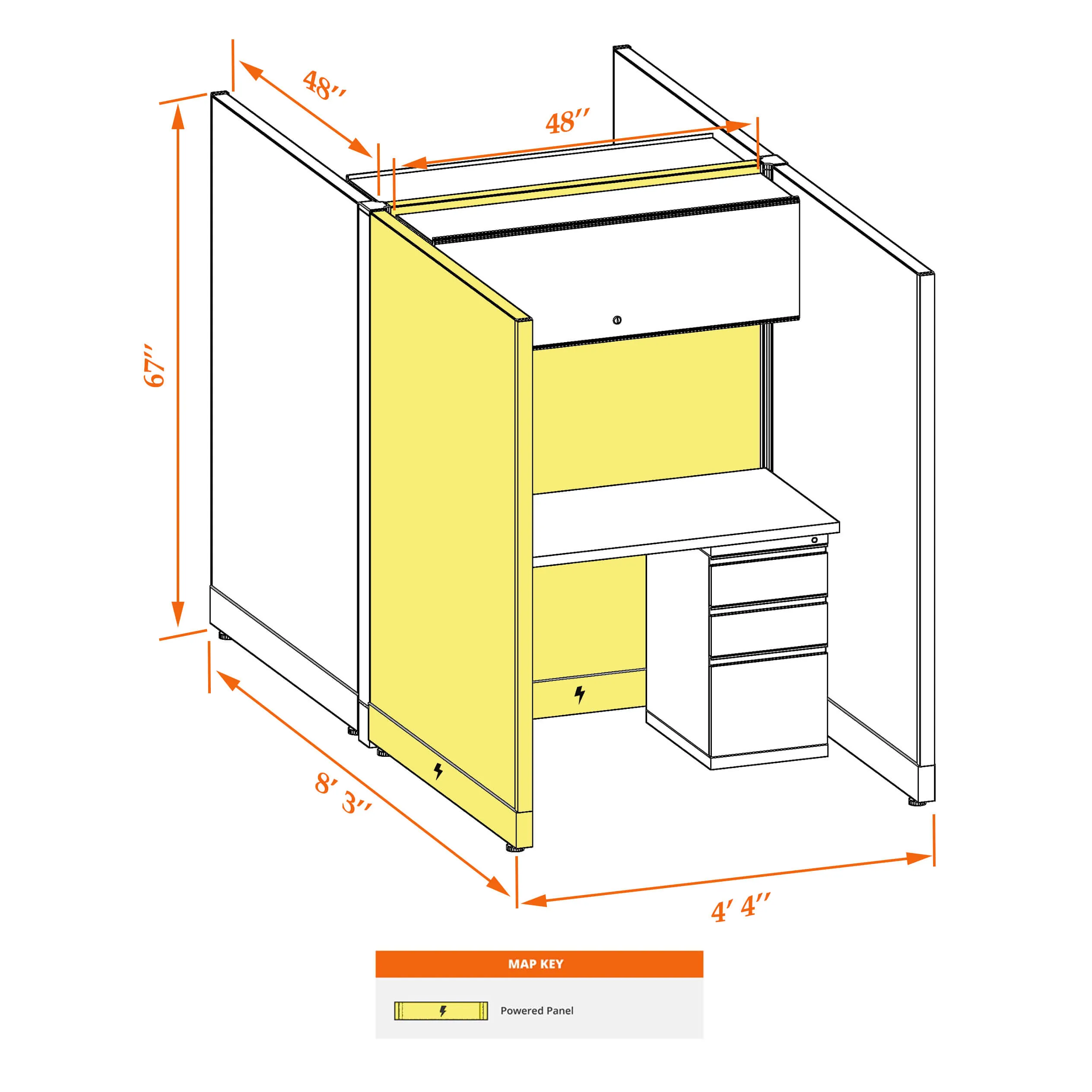 This particular configuration includes 2 cubicle with 67 inch panel height. For workspace area you can choose 4’W desks with 2, 3, or 4’D side panels, depending on the size of your office space. For very small offices that need to fit as many people as possible, we also offer 3’W desks with 2’D side panels. These cubicles are powered, so you can plug your electronic devices directly into the panel power sockets.