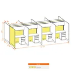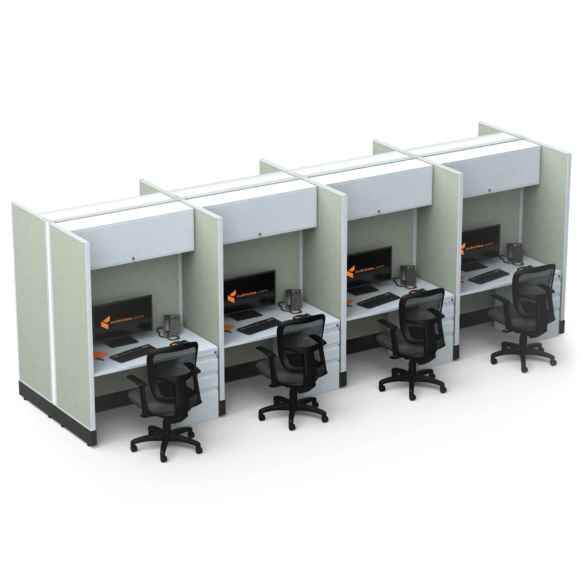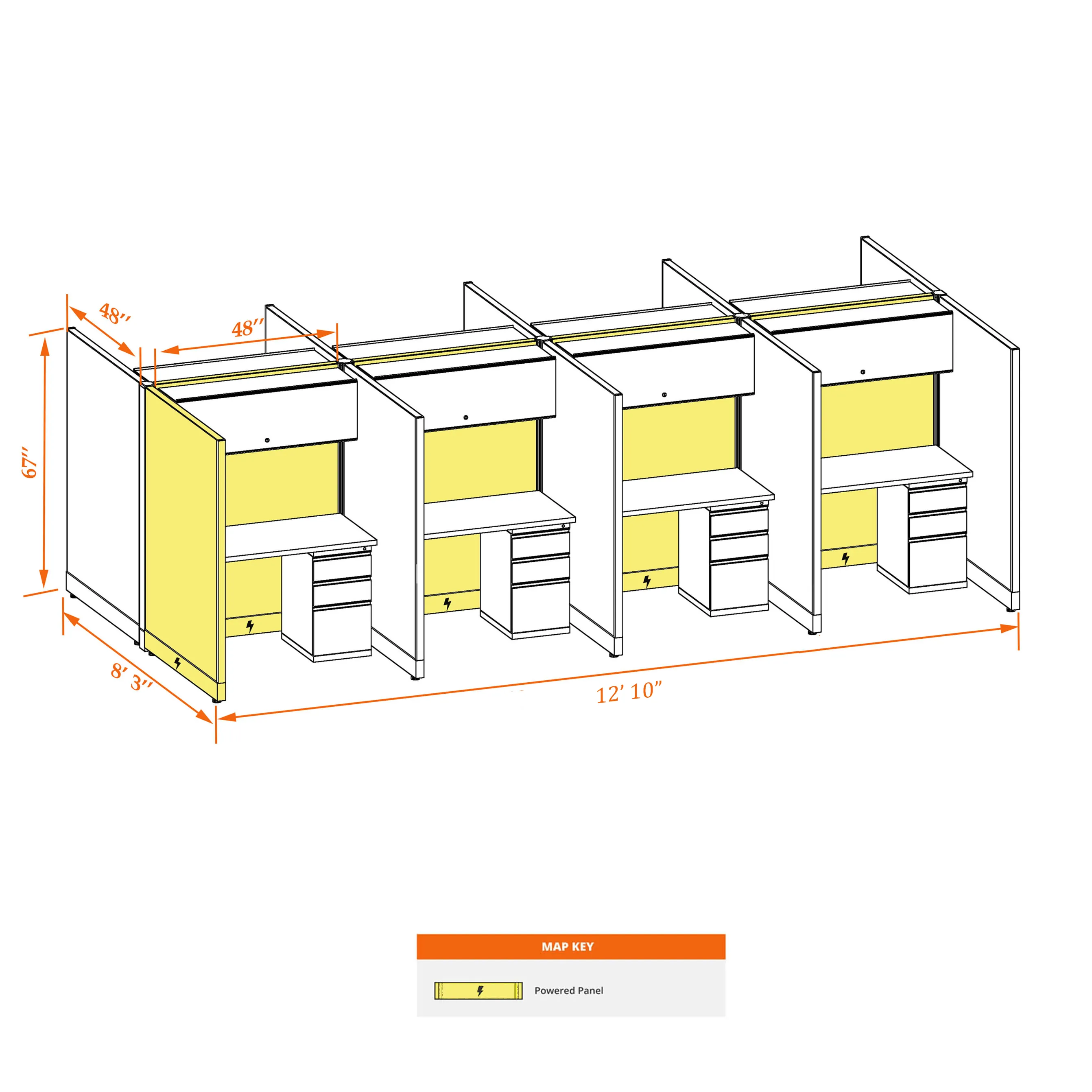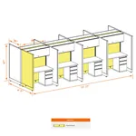 This particular configuration includes 8 cubicle with 67 inch panel height. For workspace area you can choose 4’W desks with 2, 3, or 4’D side panels, depending on the size of your office space. For very small offices that need to fit as many people as possible, we also offer 3’W desks with 2’D side panels. These cubicles are powered, so you can plug your electronic devices directly into the panel power sockets.