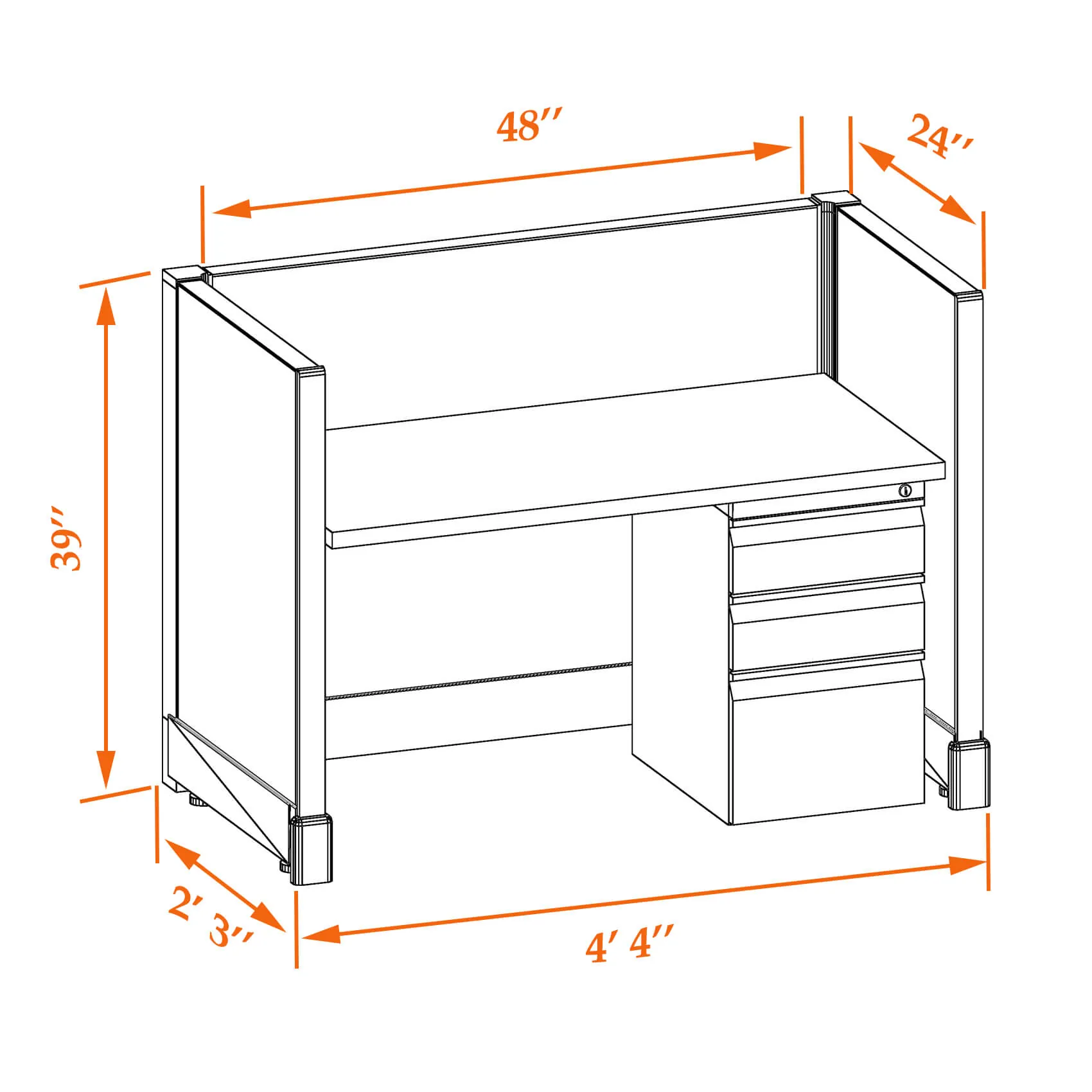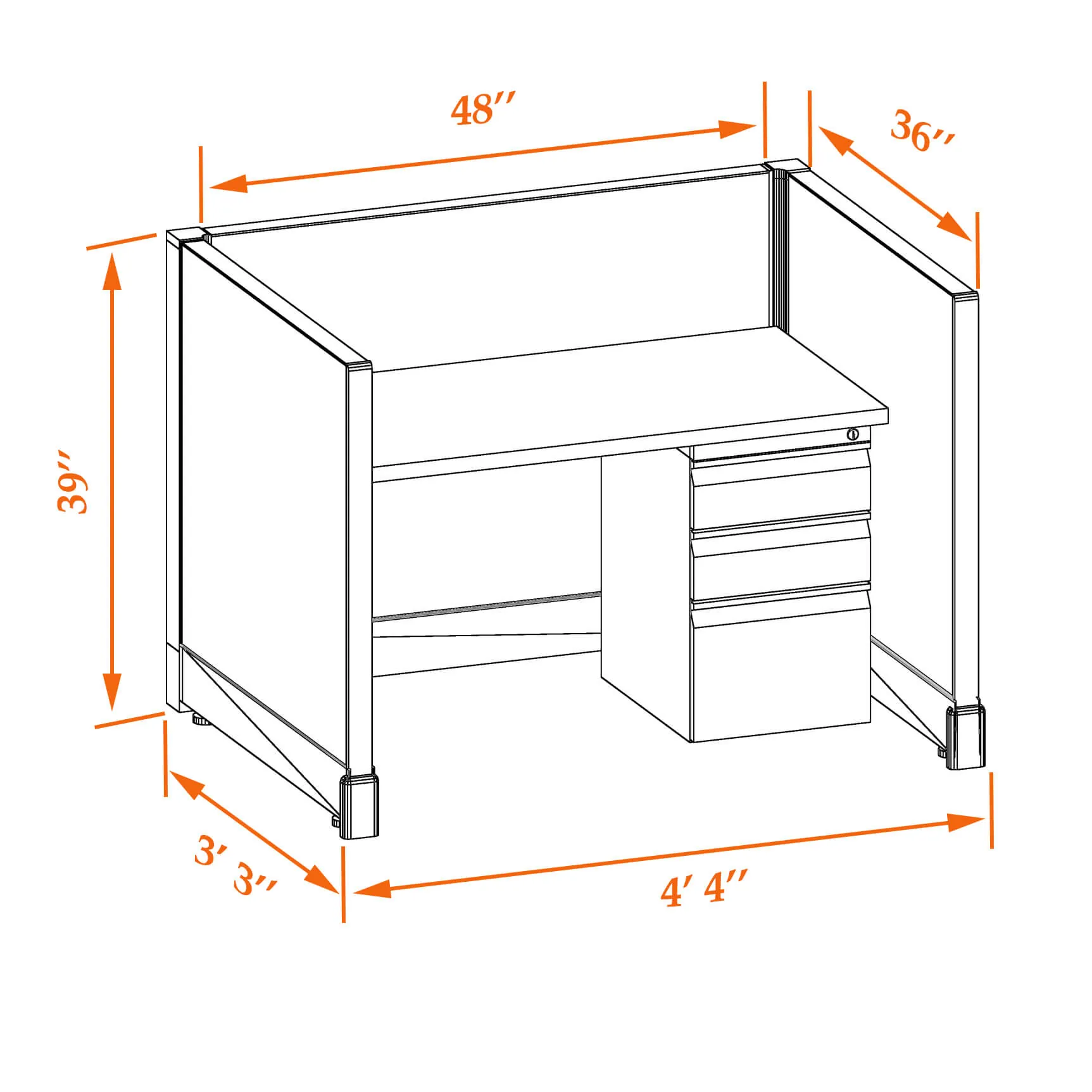 This particular configuration includes 1 cubicle with 39 inch panel height. For workspace area you can choose 2’x4’, 2’x3’, 3’x4’ or 4’x4’ depending on the size of your office space.