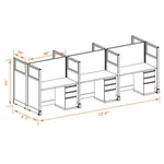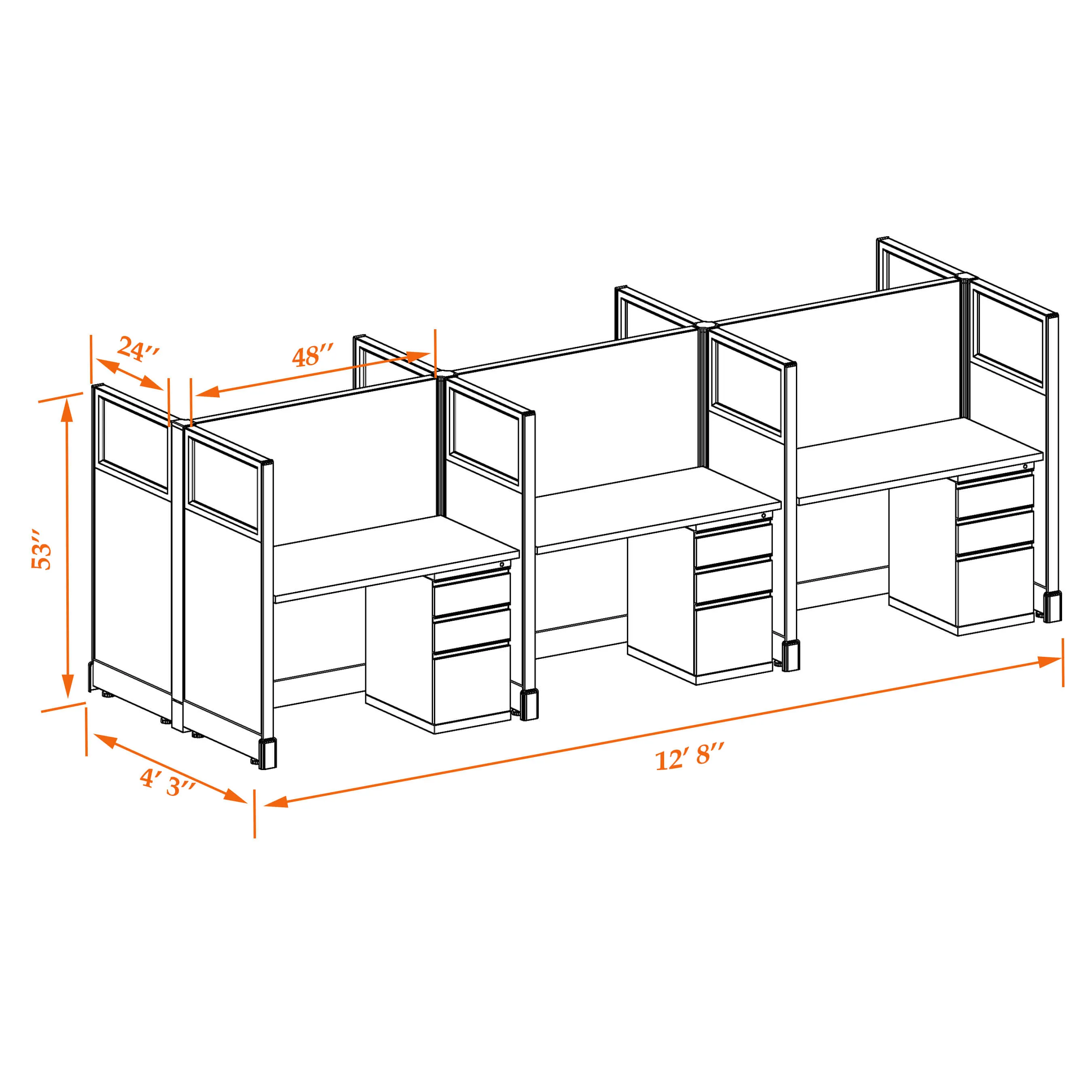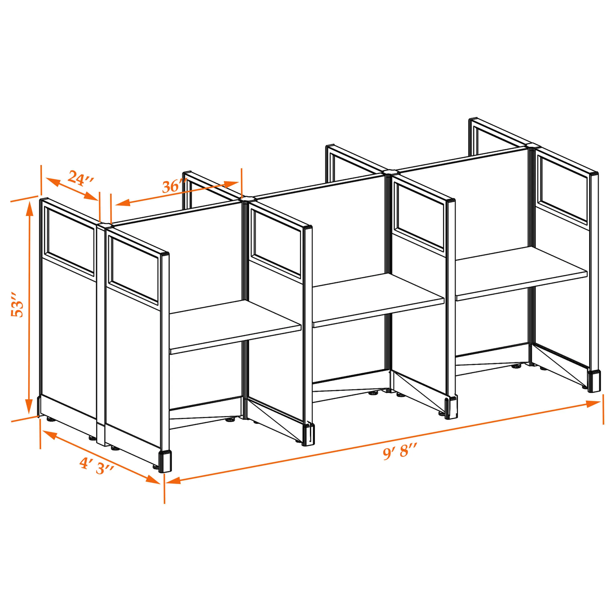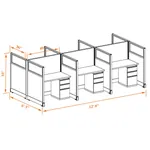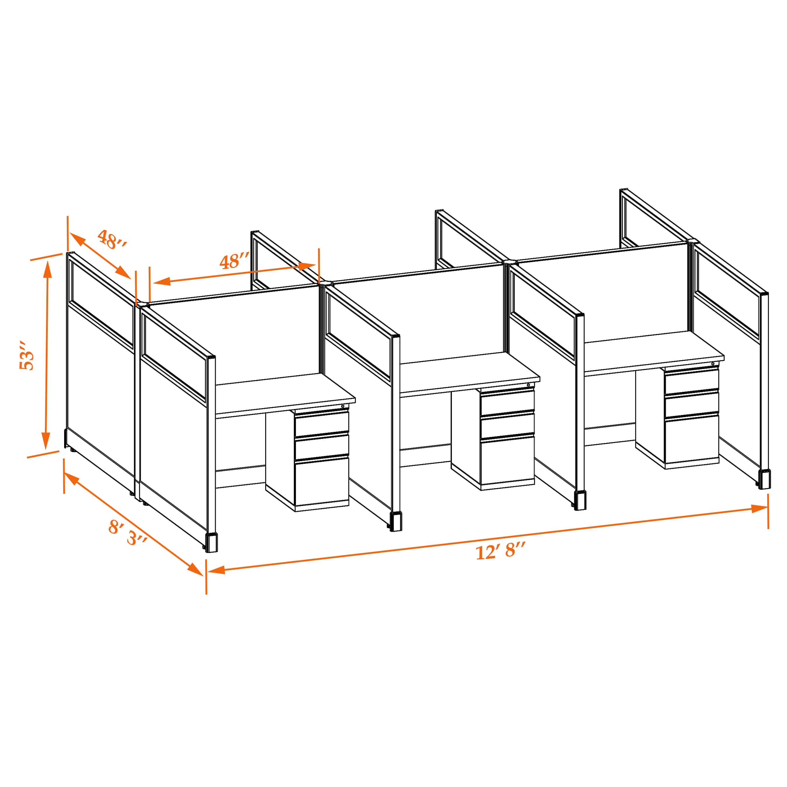 This particular configuration includes 6 cubicle with 53 inch panel height. For workspace area you can choose 2’x4’, 2’x3’, 3’x4’ or 4’x4’ depending on the size of your office space.