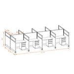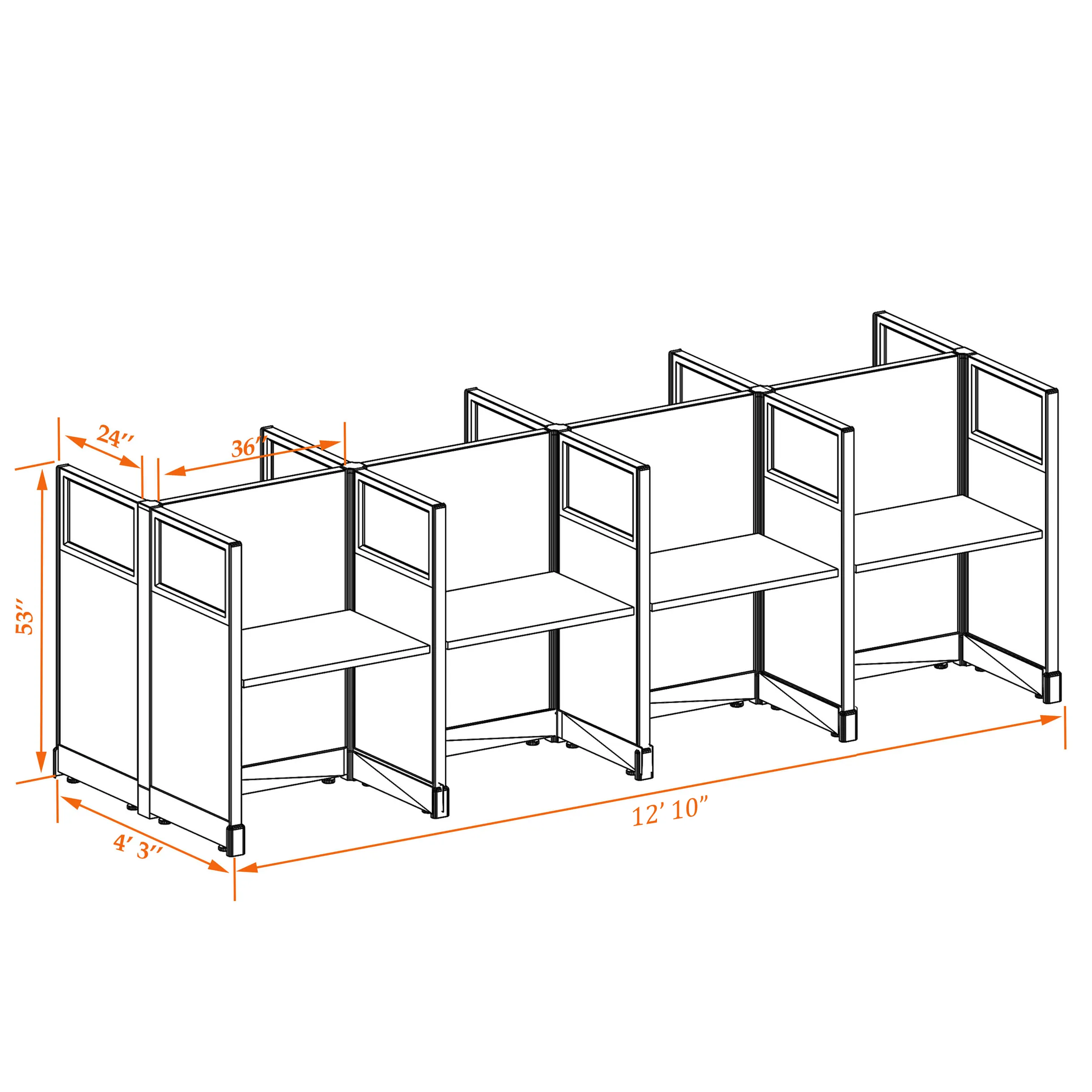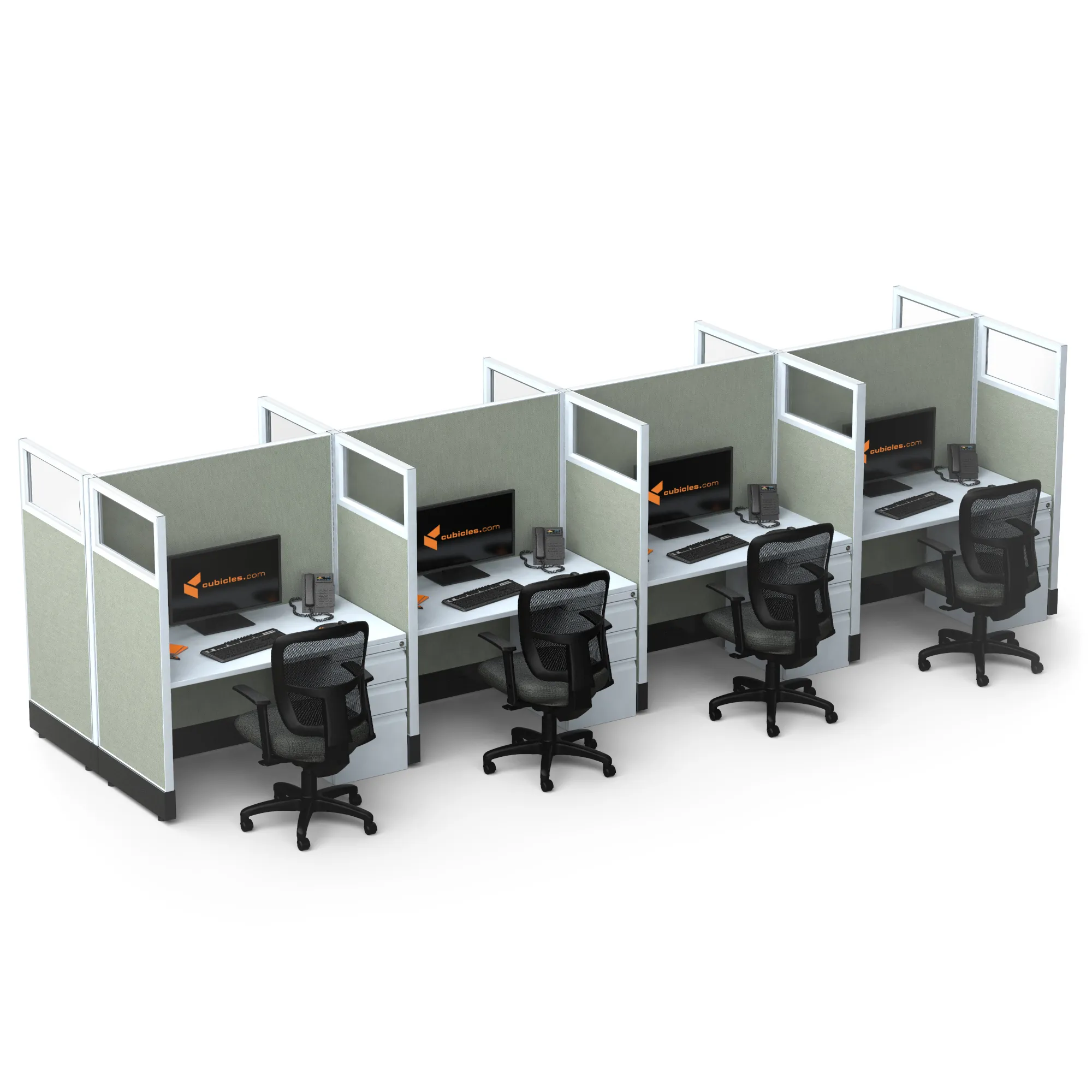 This particular configuration includes 8 cubicle with 53 inch panel height. For workspace area you can choose 2’x4’, 2’x3’, 3’x4’ or 4’x4’ depending on the size of your office space.