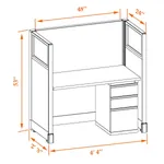 This hot desk has panels upholstered in Drift fabric (grey/beige), durable flush-mounted black resin kick plates, metal components powder coated in either White or Silver, and laminate work surfaces available in three colors: White, Medium Tone and Dark Tone. All panel frames and raceways, filing pedestals, overheads and shelves are made from 100% recyclable steel. Configurations that include glass-top panels feature real glass and metal frames.