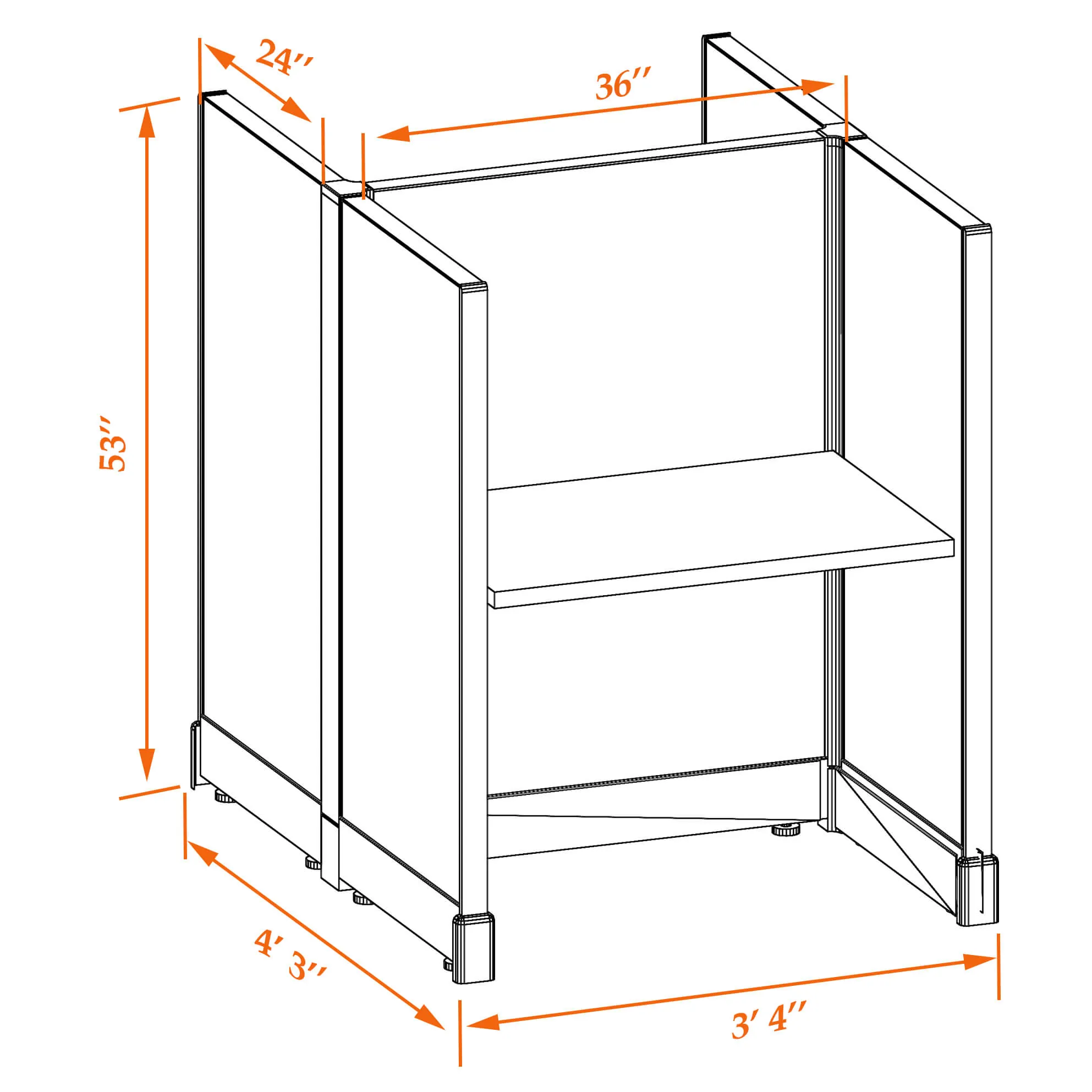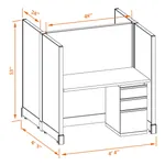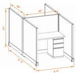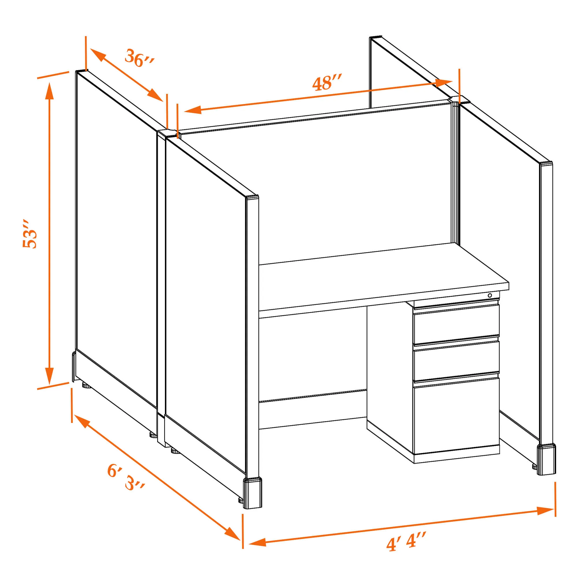 This particular configuration includes 2 cubicles with 53 inch panel height. For workspace area you can choose 4’W desks with 2, 3, or 4’D side panels, depending on the size of your office space. For very small offices that need to fit as many people as possible, we also offer 3’W desks with 2’D side panels.