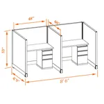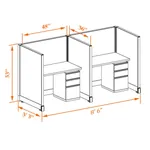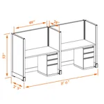 This particular configuration includes 2 cubicles (in a row) with 53 inch panel height. For workspace area you can choose 4’W desks with 2, 3, or 4’D side panels, depending on the size of your office space. For very small offices that need to fit as many people as possible, we also offer 3’W desks with 2’D side panels.