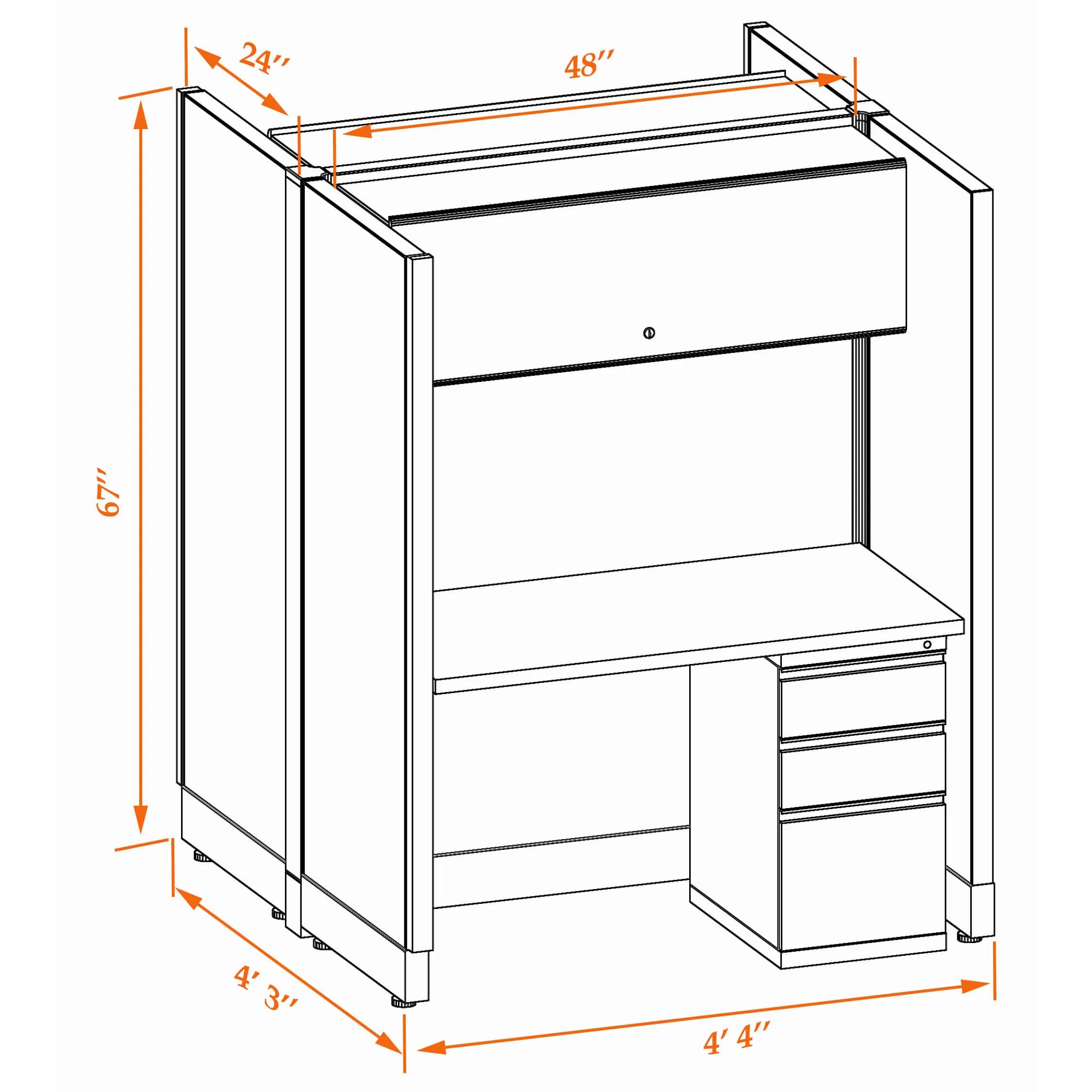 With panels as tall as the average person, these hoteling stations provide the greatest privacy for independent, focused work and are best used in areas where team members do not need much interaction or collaboration. Their height allows the mounting of convenient overhead storage which is welcomed as a useful extra, compared to the lower height configurations. All the needed features are seamlessly integrated in the overall design, providing you with great value for each square foot and optimal return on your investment.