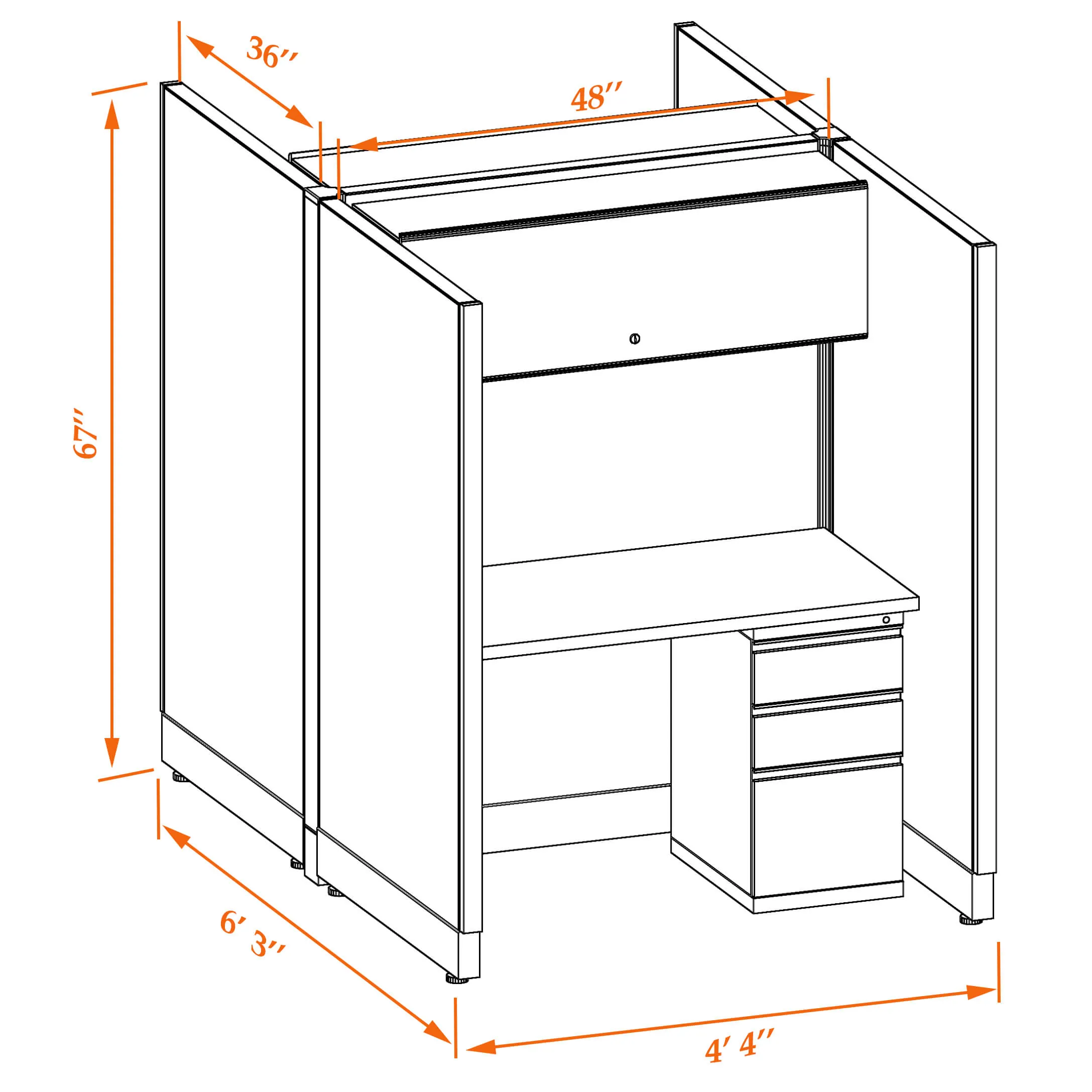This particular configuration includes 2 cubicle with 67 inch panel height. For workspace area you can choose 4’W desks with 2, 3, or 4’D side panels, depending on the size of your office space. For very small offices that need to fit as many people as possible, we also offer 3’W desks with 2’D side panels.