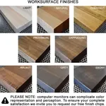 Please consider all factors influencing color perception when choosing work surface finish. Natural or artificial light, time of day, and surrounding colors in your office environment all can influence ones visual perception of color.