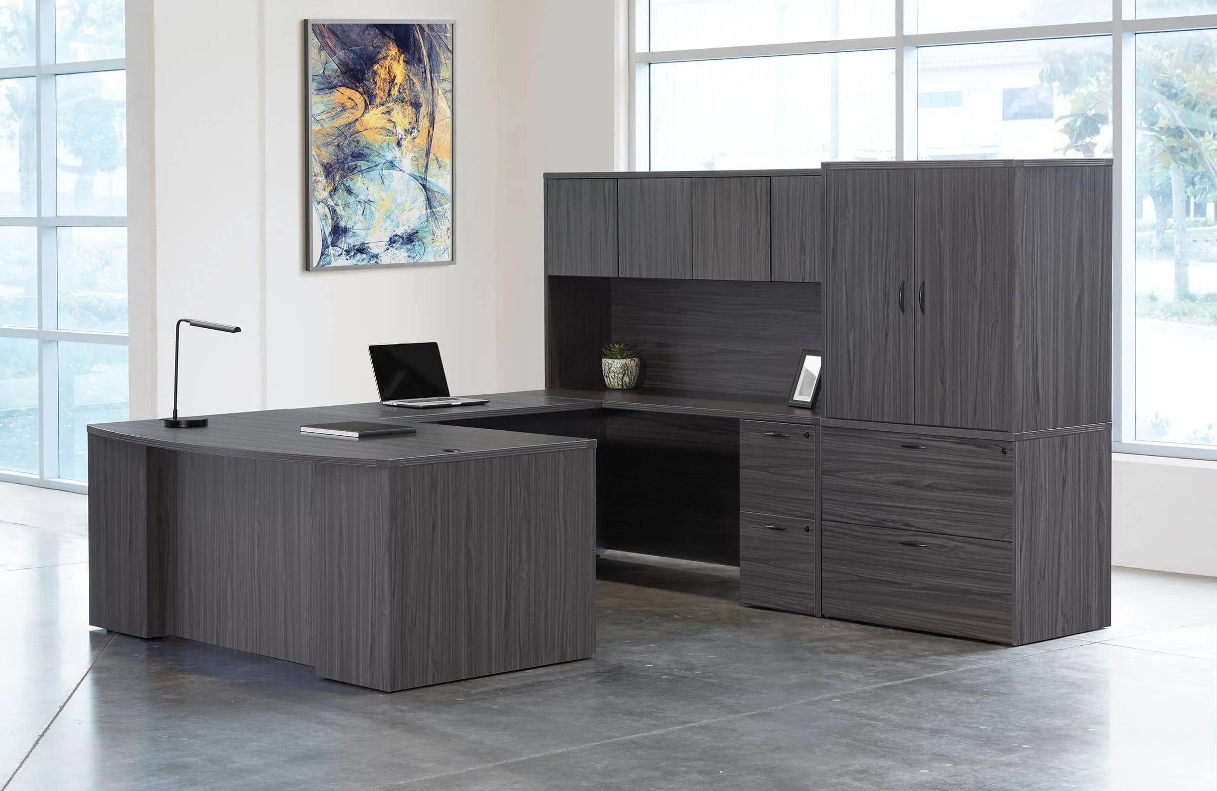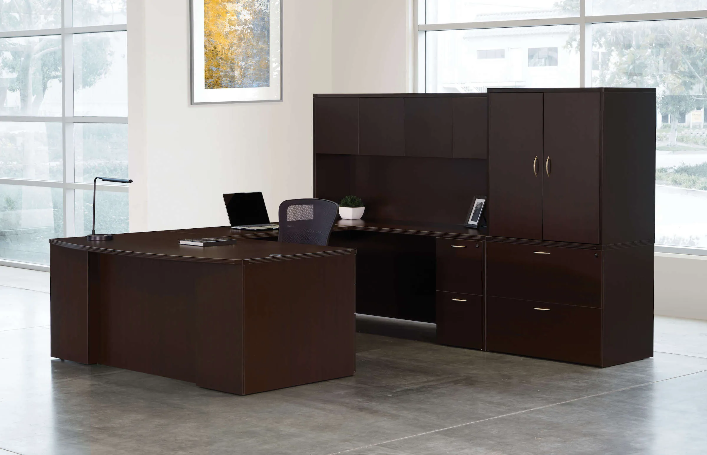 The u shaped executive desk with hutch is an ideal office desk with storage combo set, which includes the following features: