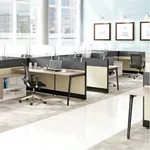 Our modern cubicles with slender legs offer a sophisticated, yet versatile solution for today's corporate workplace environment. These office desk stations are designed to be configured to create both private workspaces and collaborative areas, making it an excellent choice for just about any office configuration imaginable.