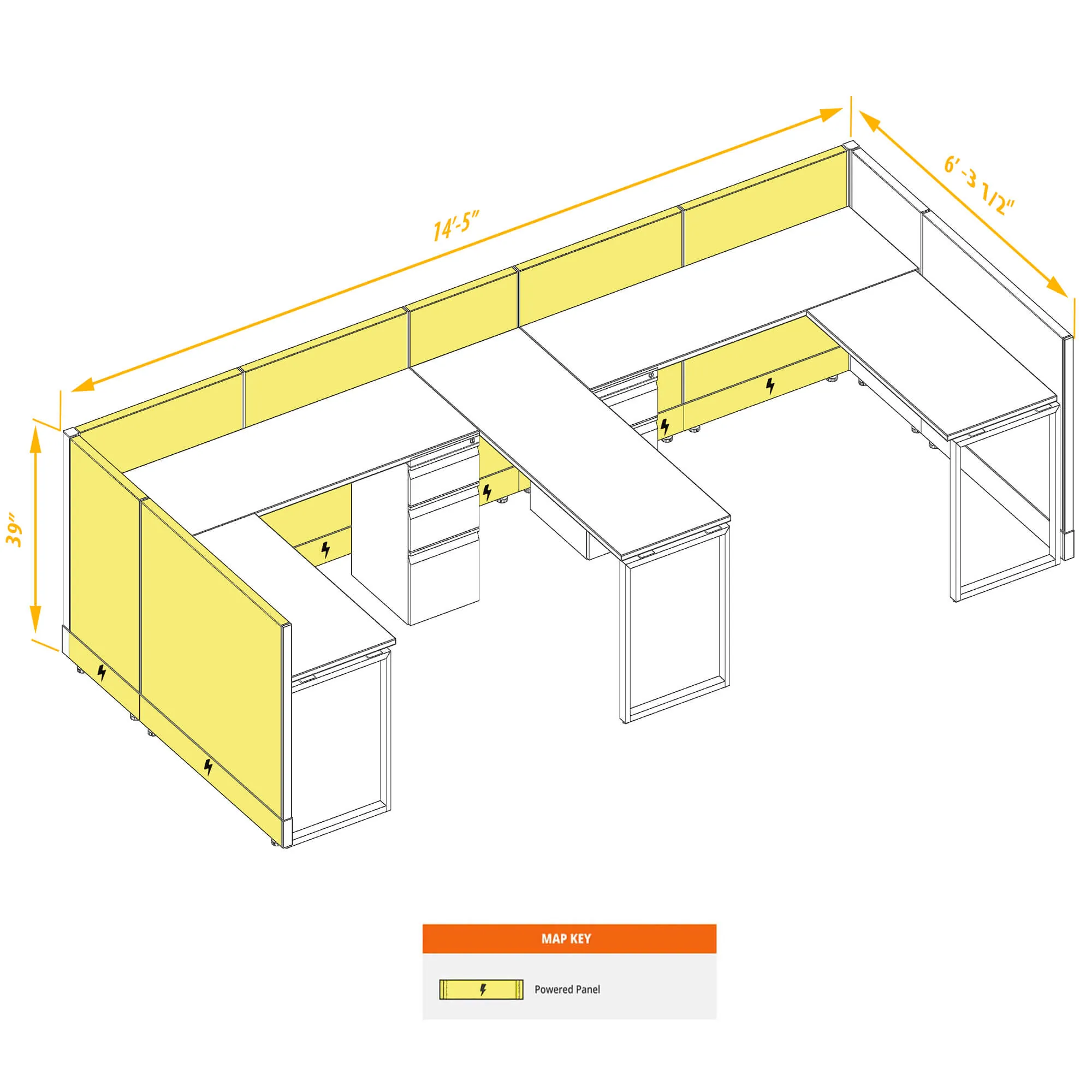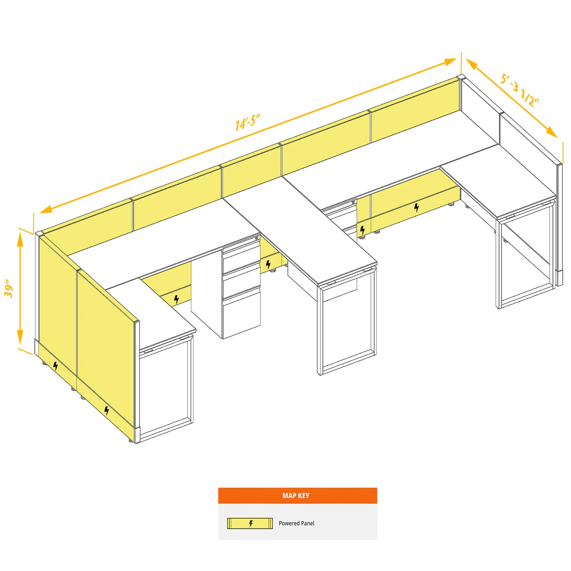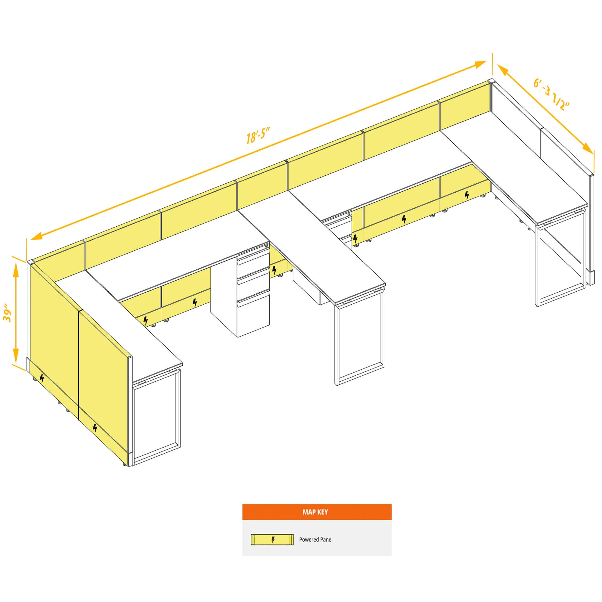 Workstation Furniture 39H 2pack Bullpen Powered