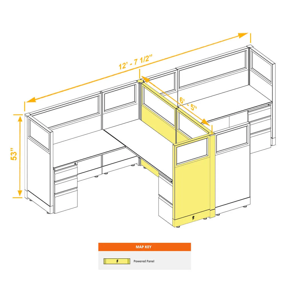 Glass Office Cubicles 53H 2pack Cluster Powered