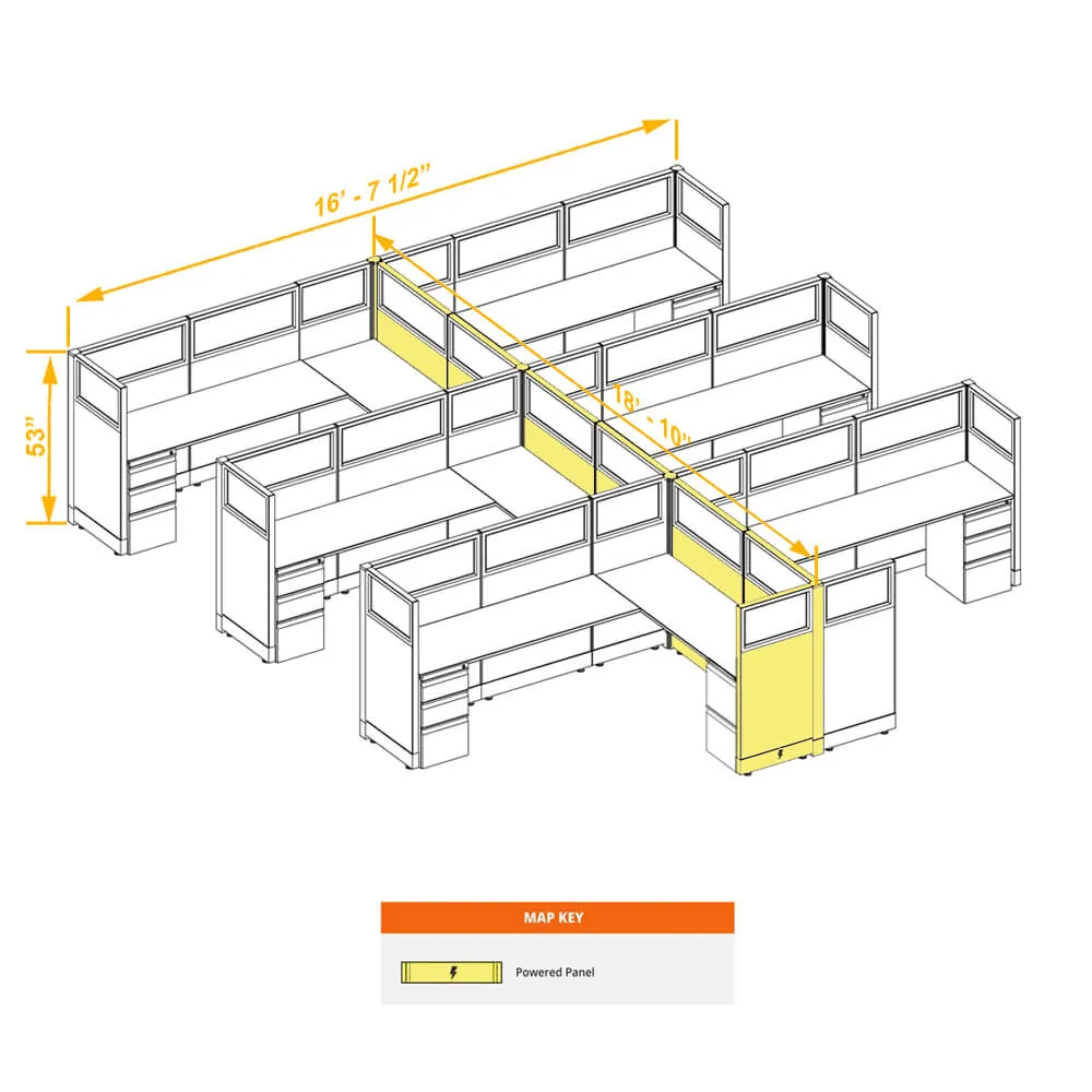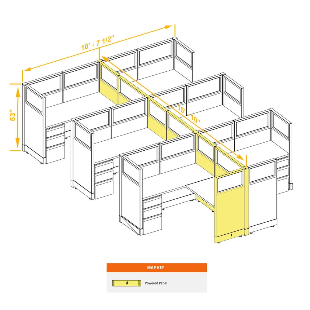 Glass Office Cubicles 53H 6pack Cluster Powered