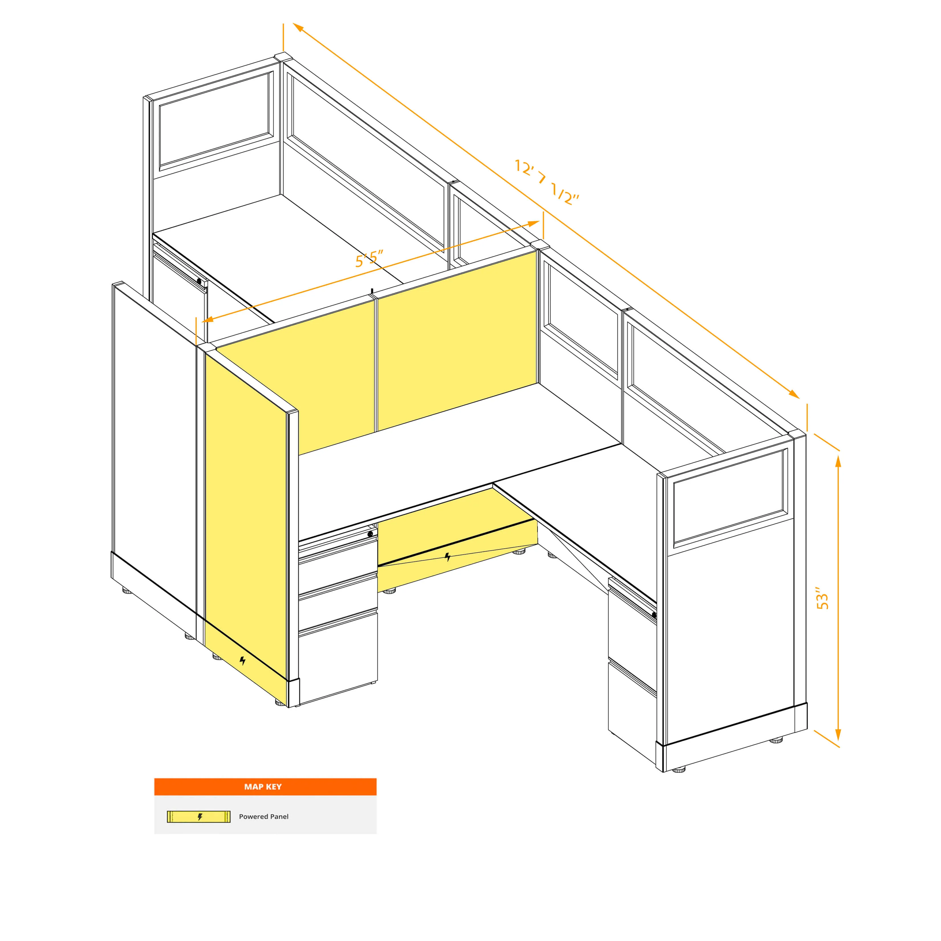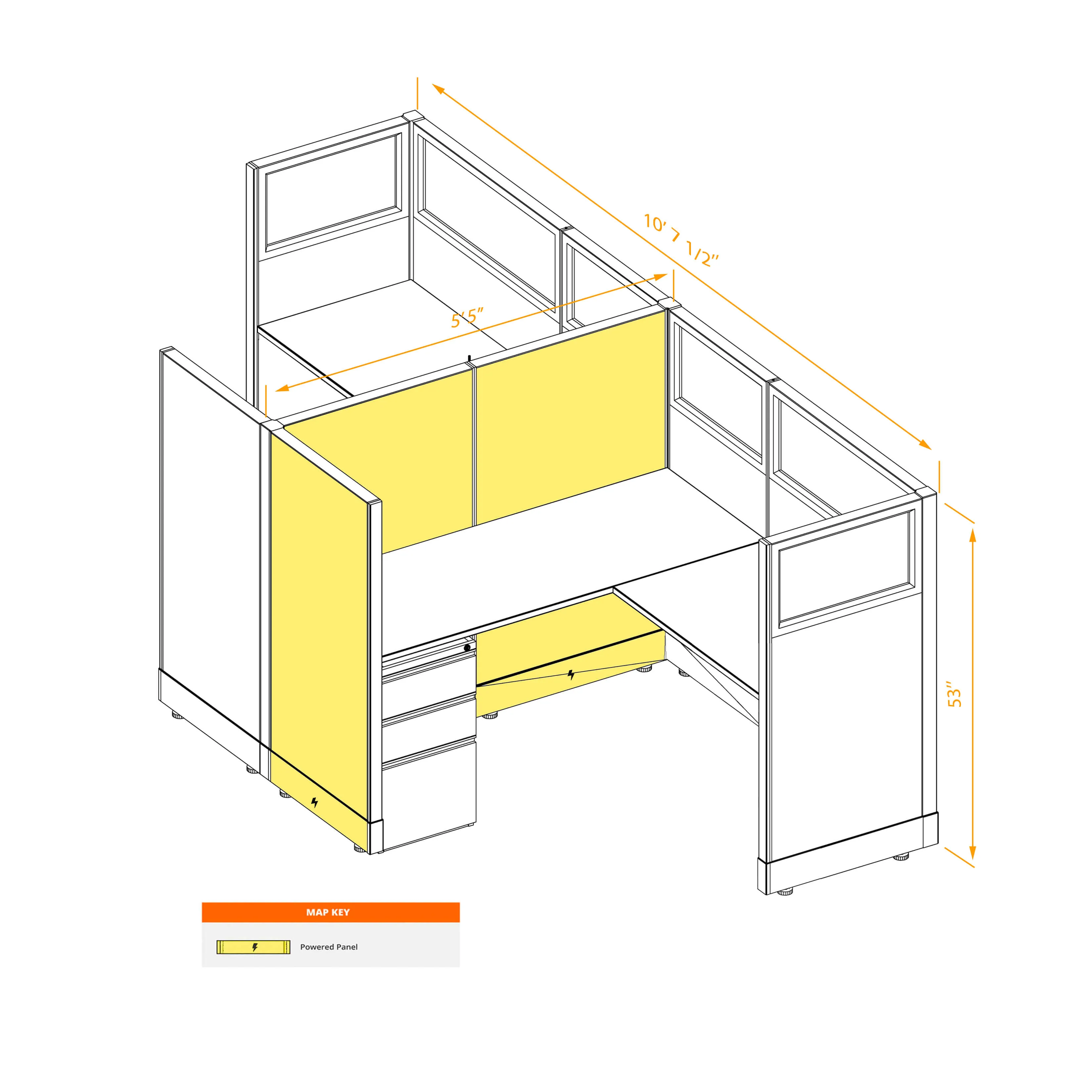 Partial Glass Office Cubicles 53H 2pack Cluster Powered