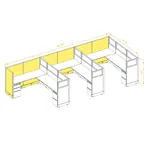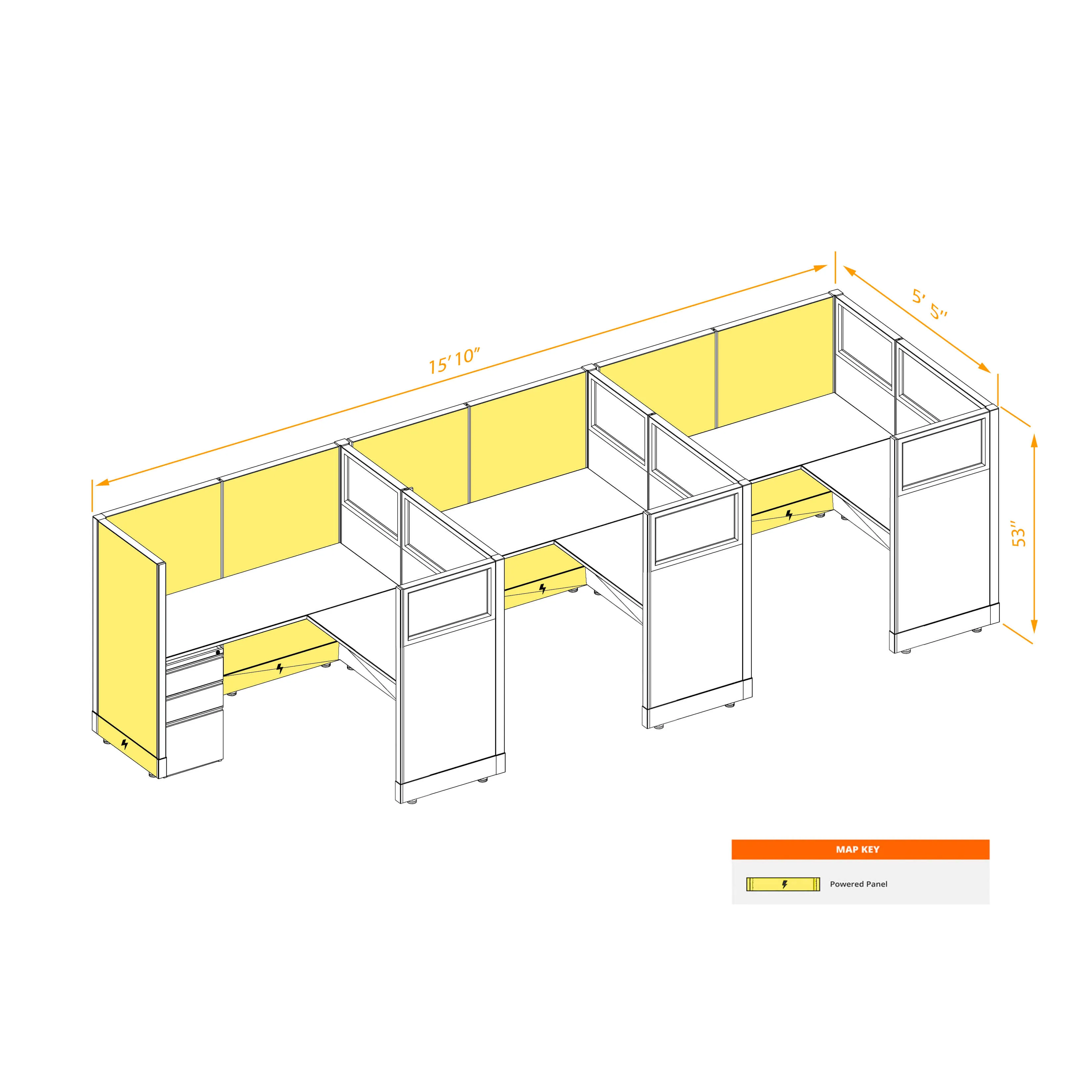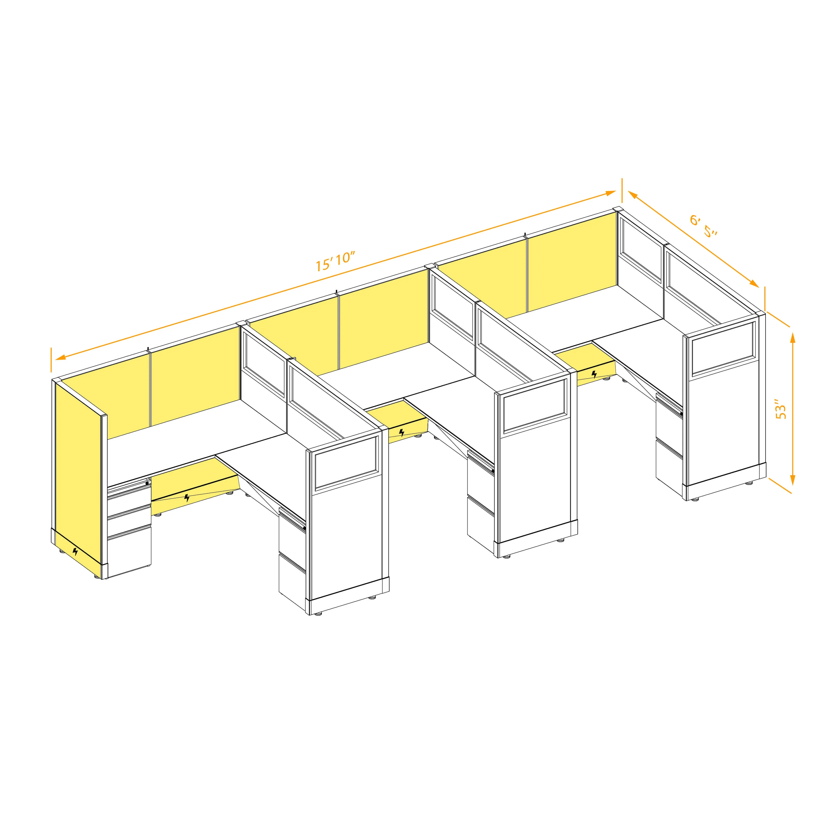 Partial Glass Office Cubicles 53H 3pack Inline Powered