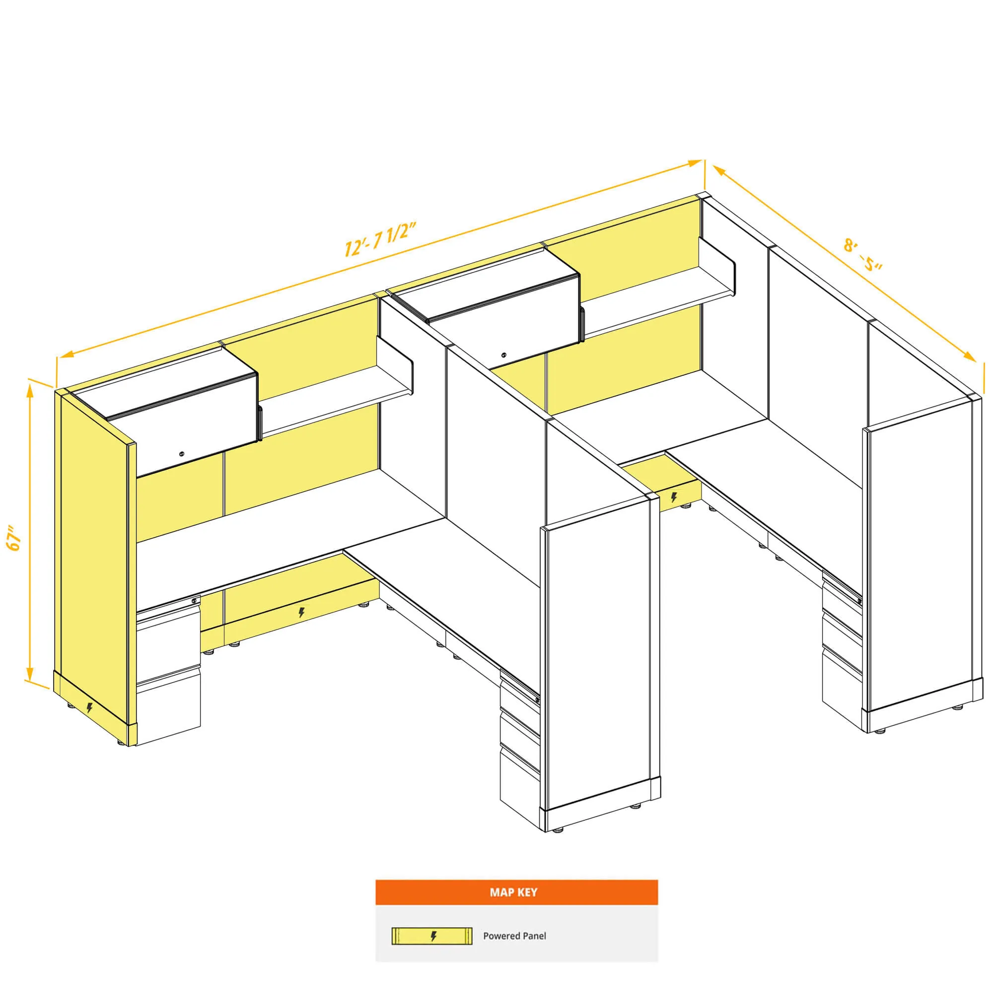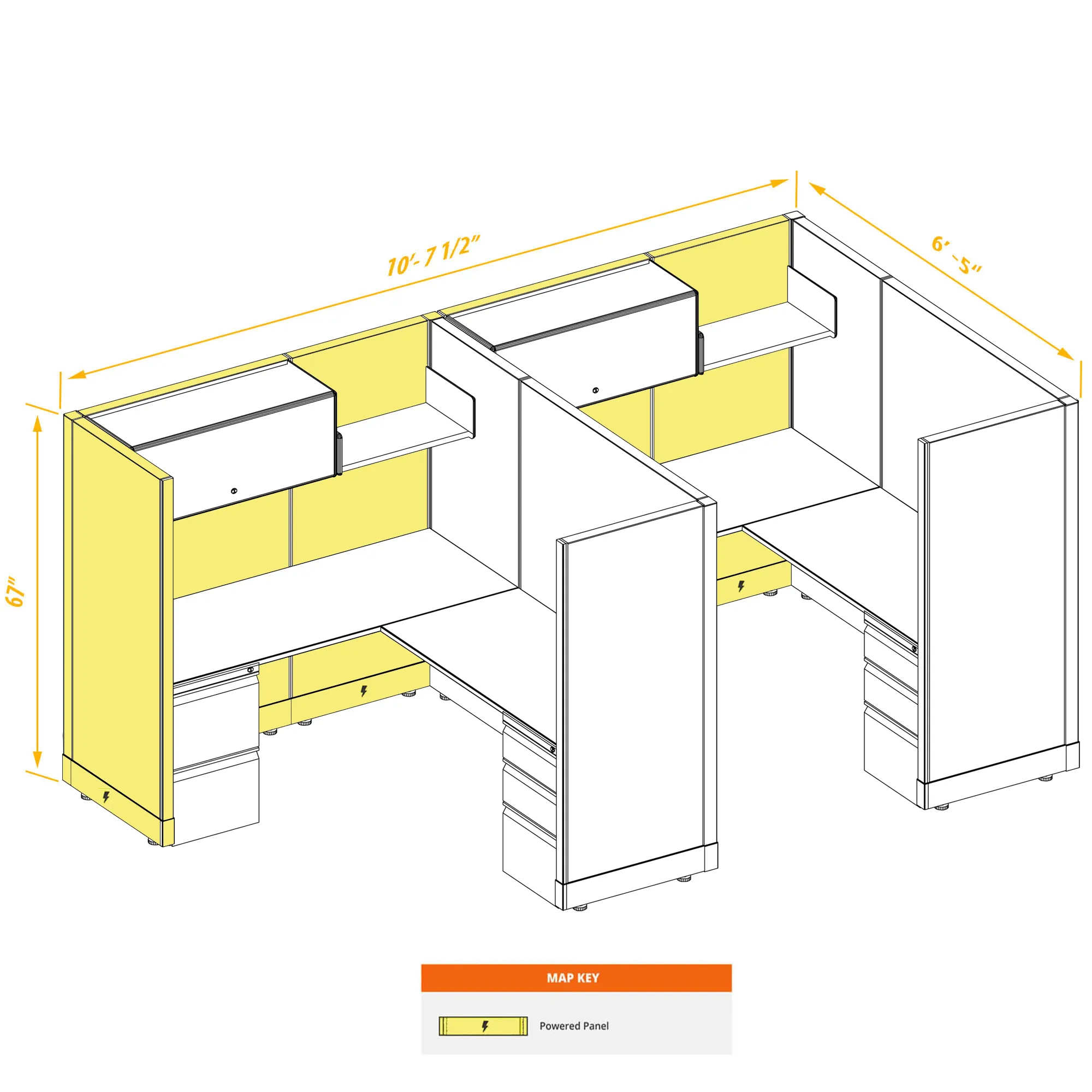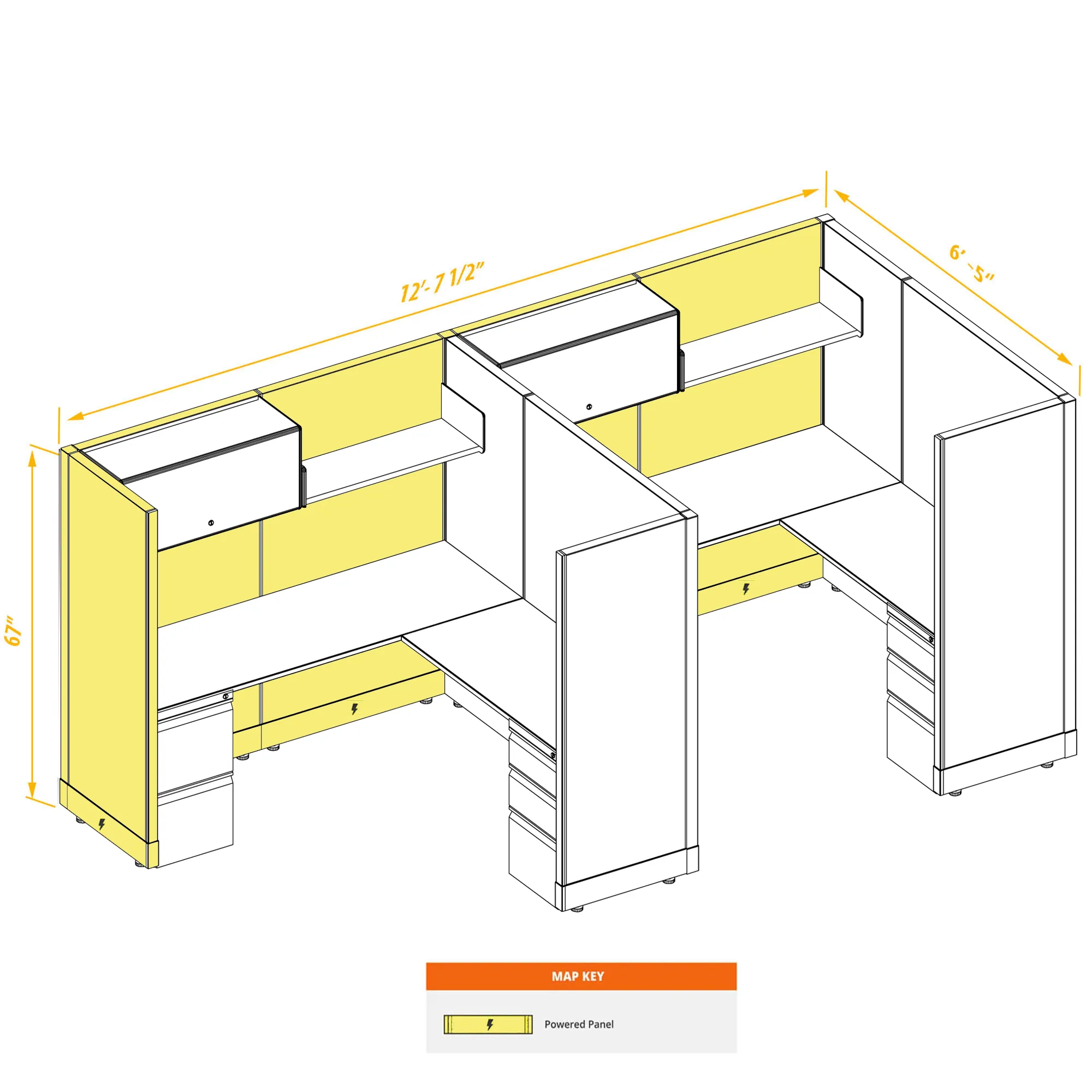 Modular Office Desk Furniture 67H 2pack Inline Powered