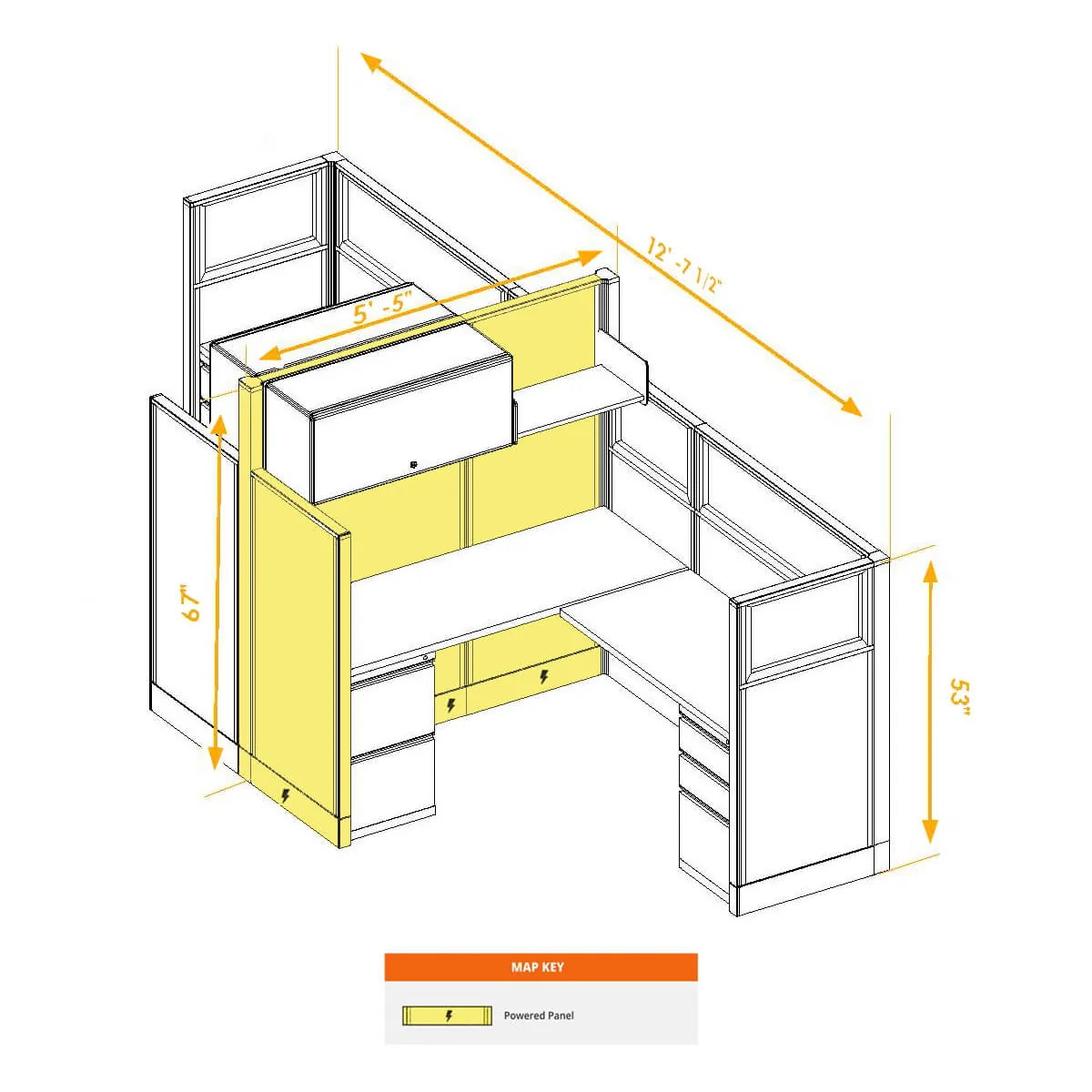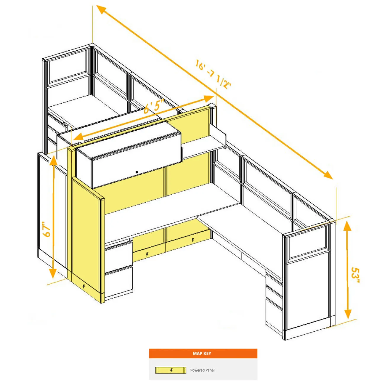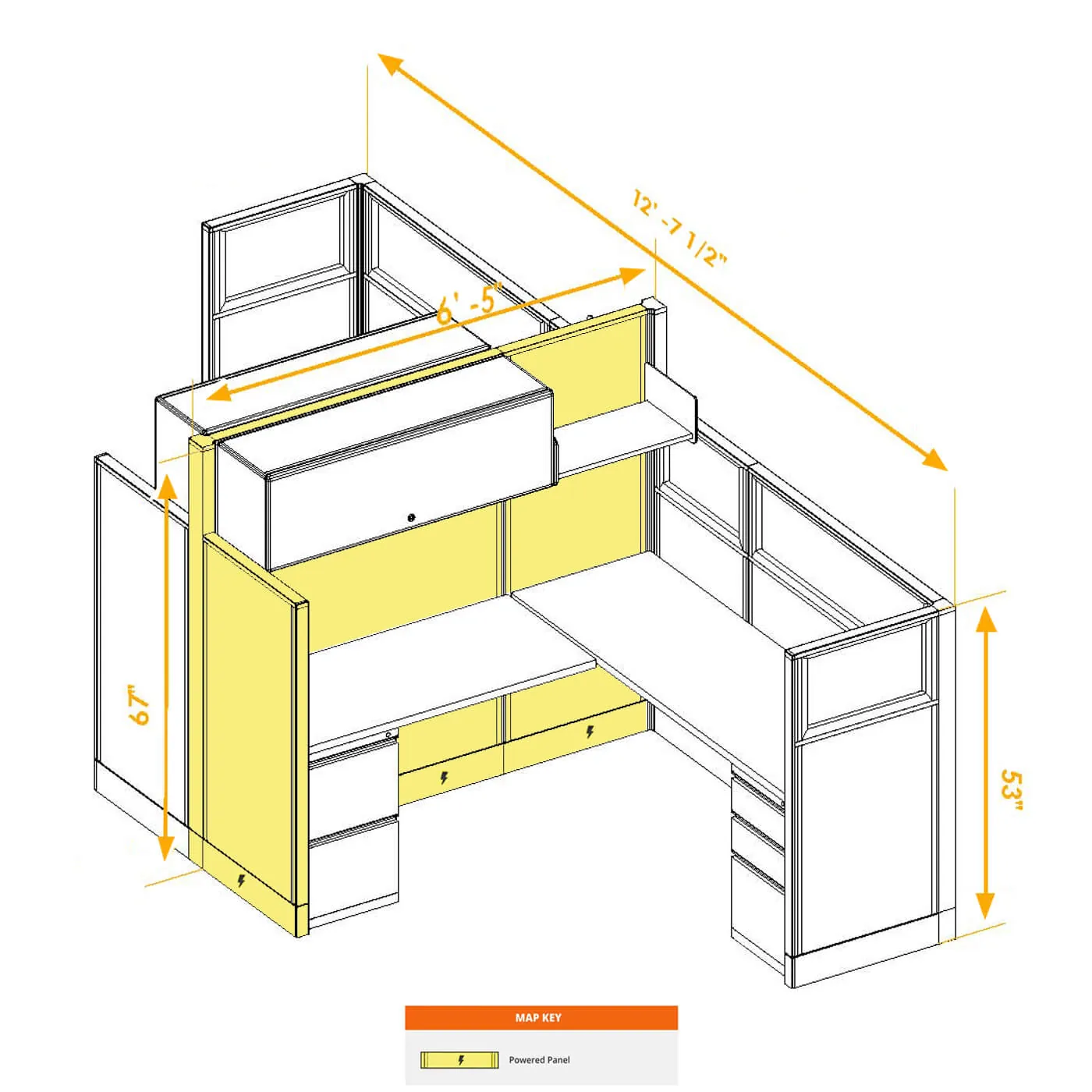 Partial Glass Office Cubicles 53-67H 2pack Cluster Powered