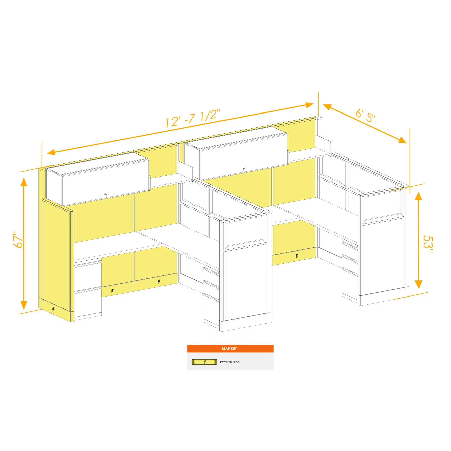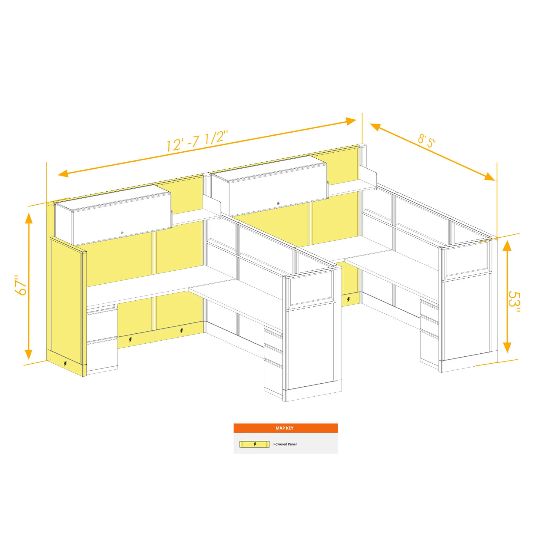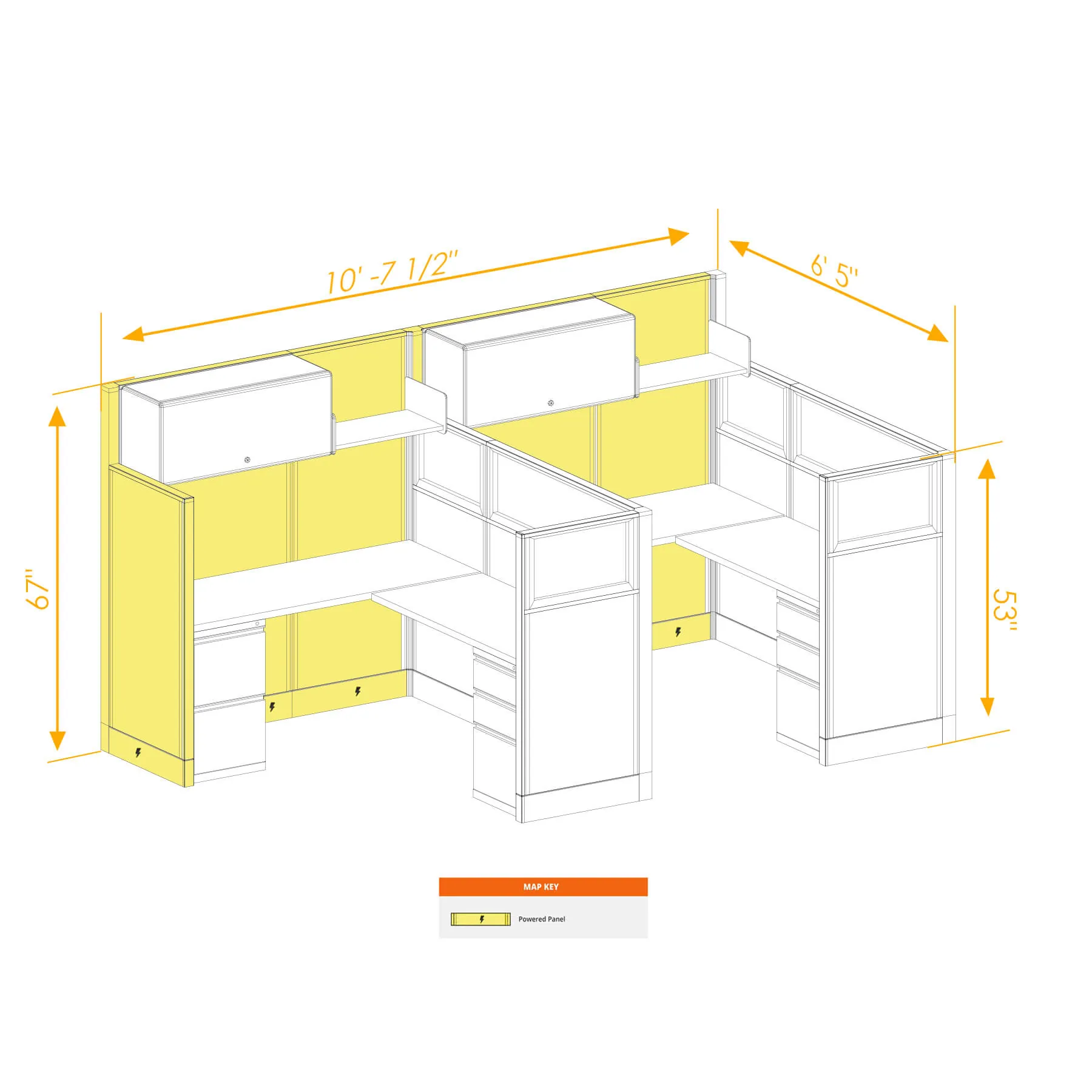 Partial Glass Office Cubicles 53-67H 2pack Inline Powered