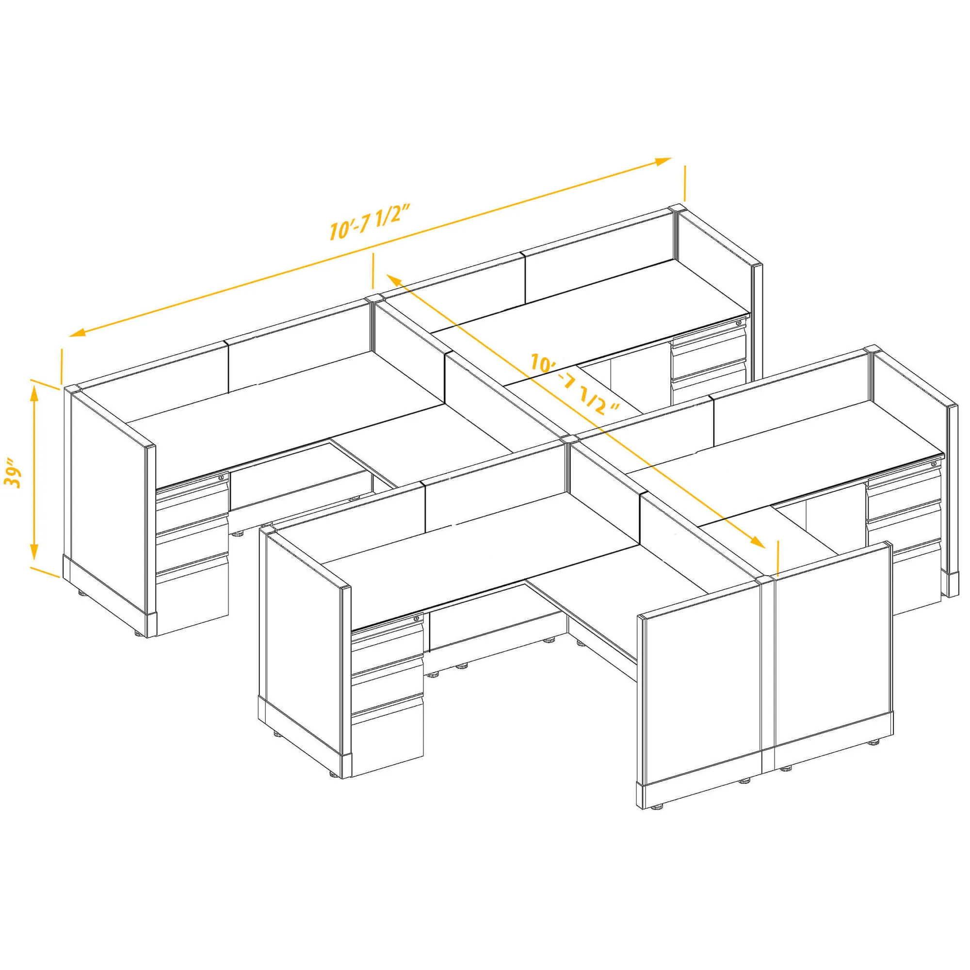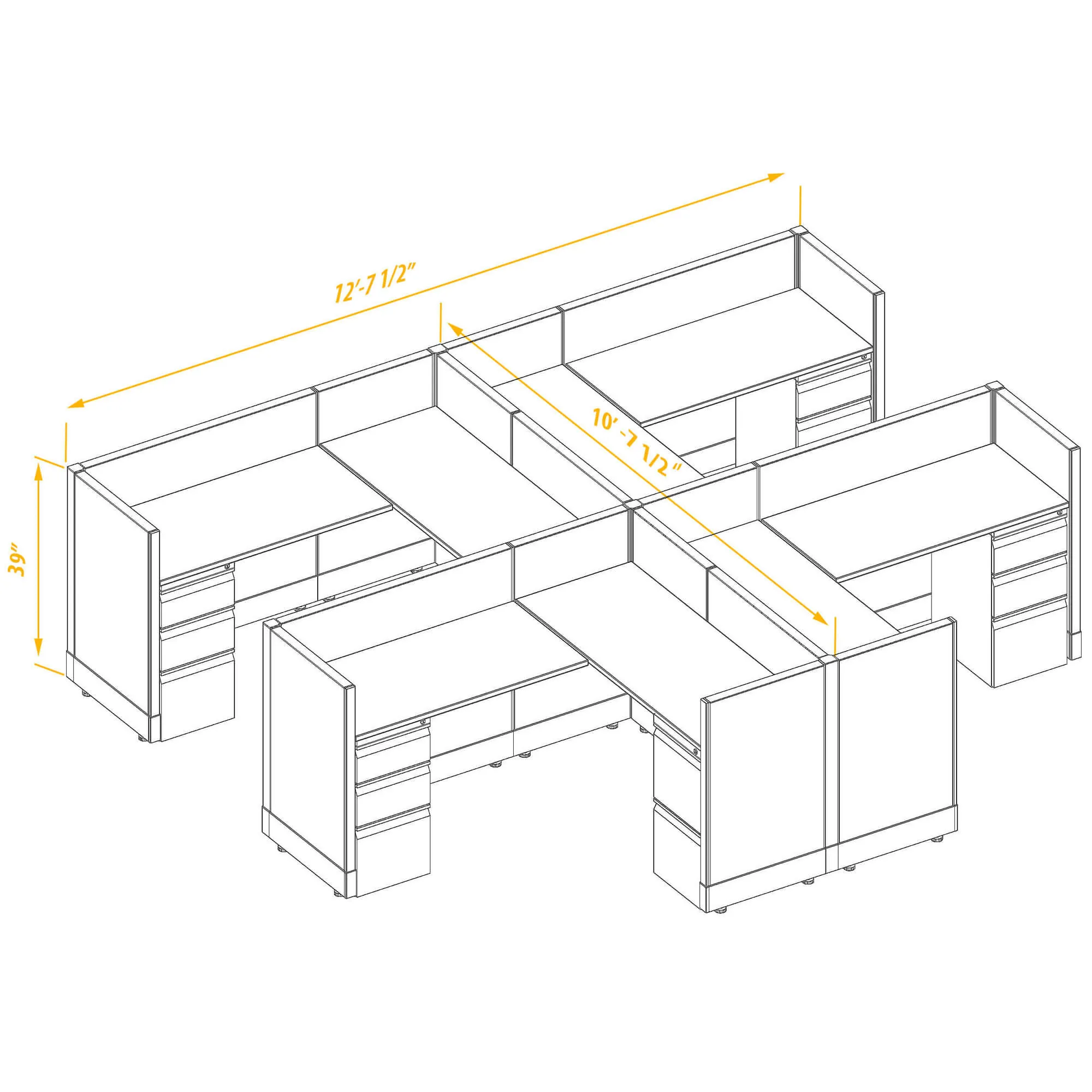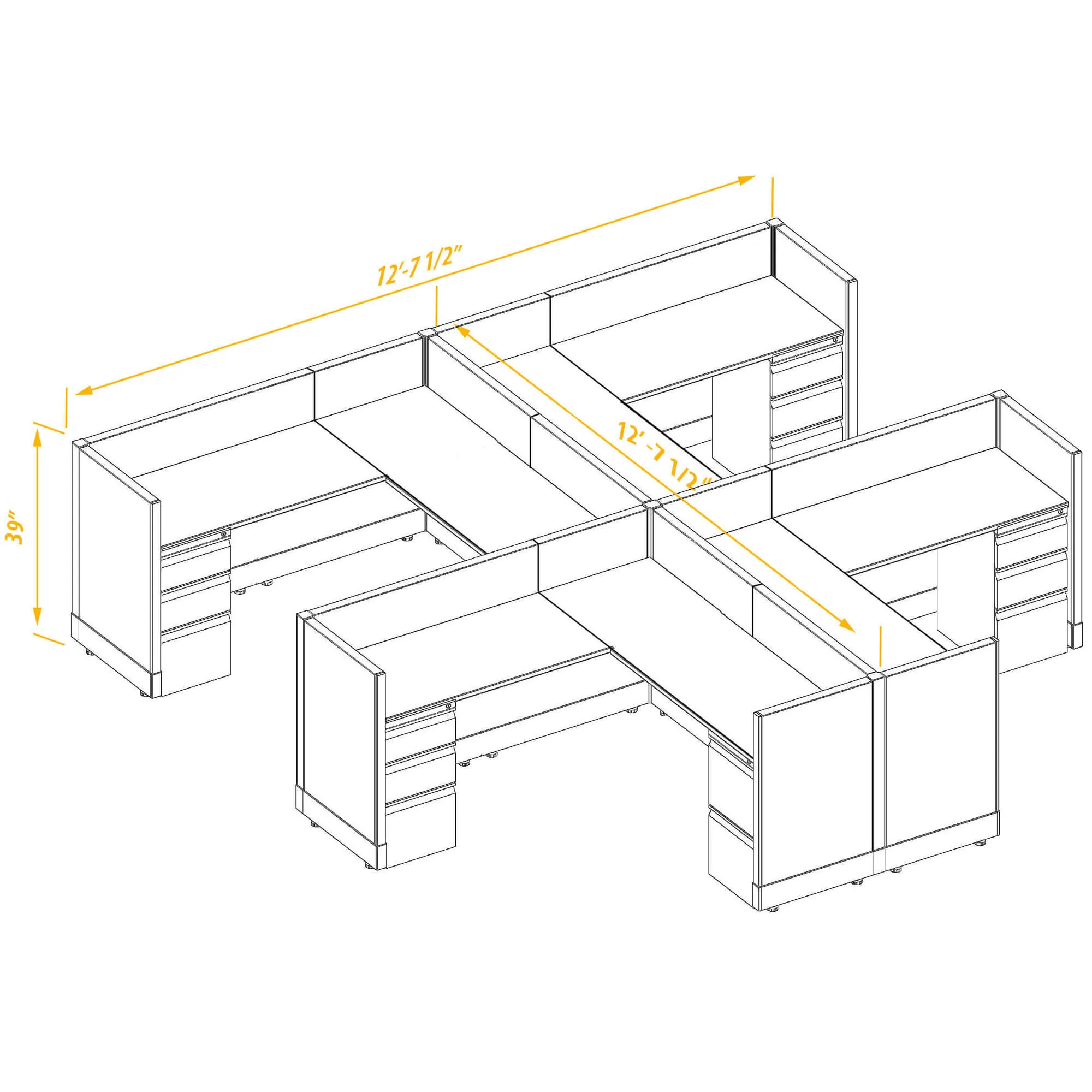 System Furniture 39H 4pack Cluster Non Powered
