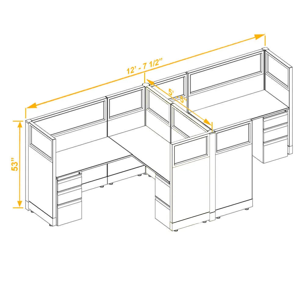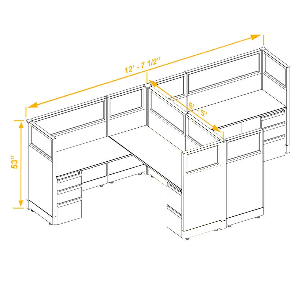 Glass Office Cubicles 53H 2pack Cluster Non Powered