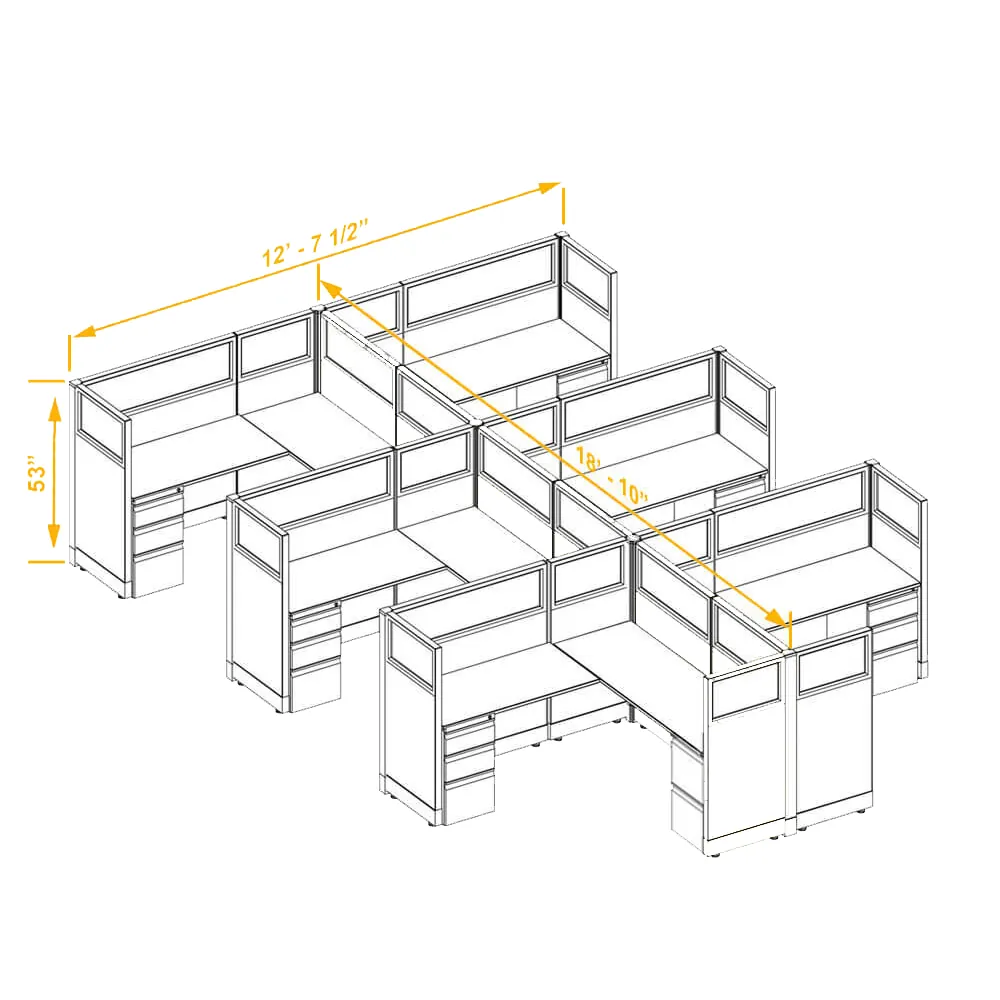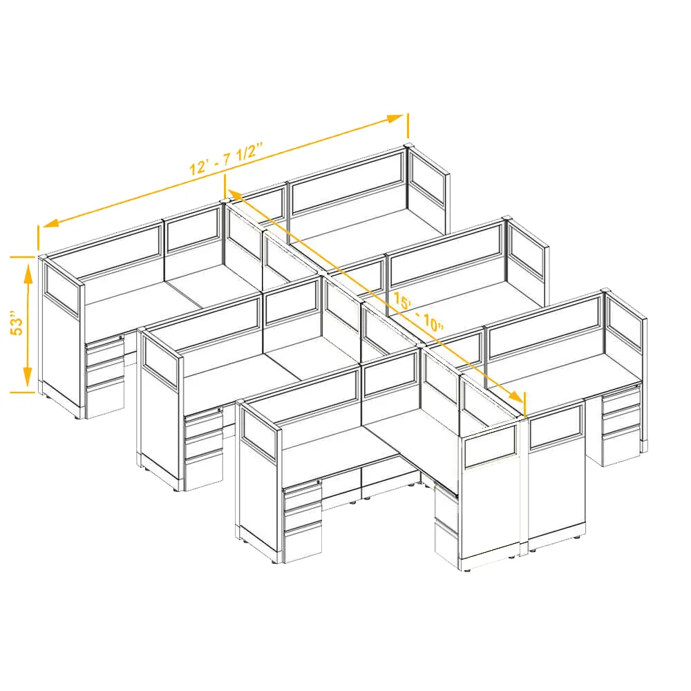 Glass Office Cubicles 53H 6pack Cluster Non Powered