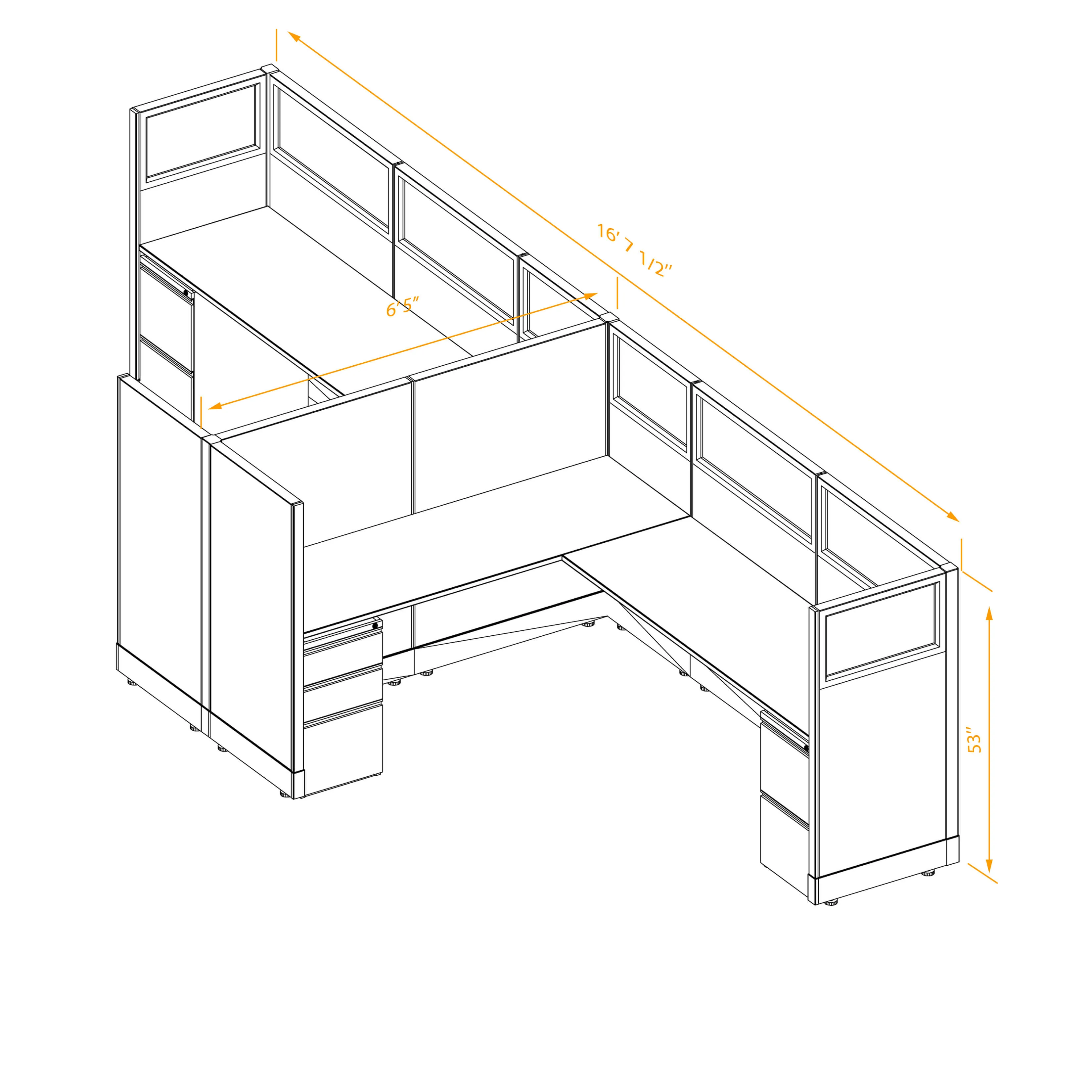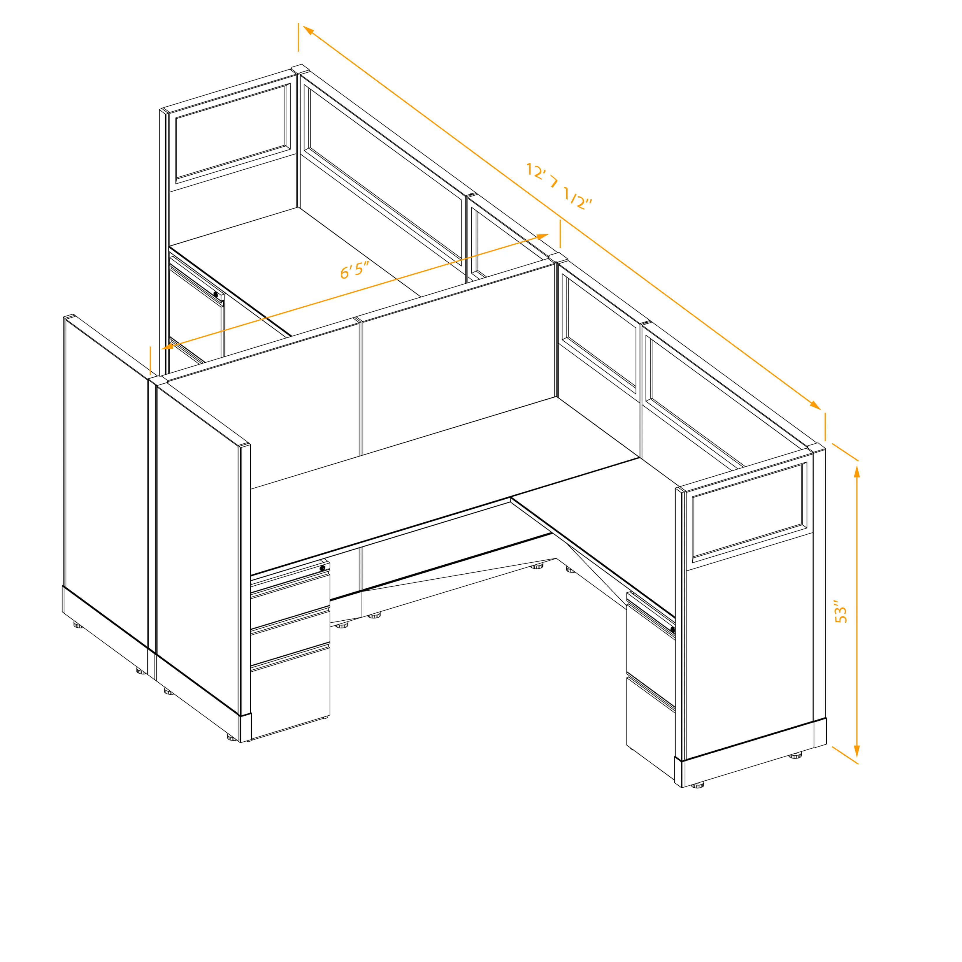 Partial Glass Office Cubicles 53H 2pack Cluster Non Powered