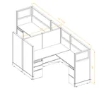 This modular furniture has panels upholstered in Grey/Beige fabric, durable flush-mounted black resin kick plates, metal components powder coated in either White or Silver, and laminate work surfaces available in three colors: White, Medium Tone and Dark Tone. All panel frames and raceways, filing pedestals, overheads and shelves are made from 100% recyclable steel. Configurations that include glass-top panels feature real glass and metal frames.
