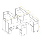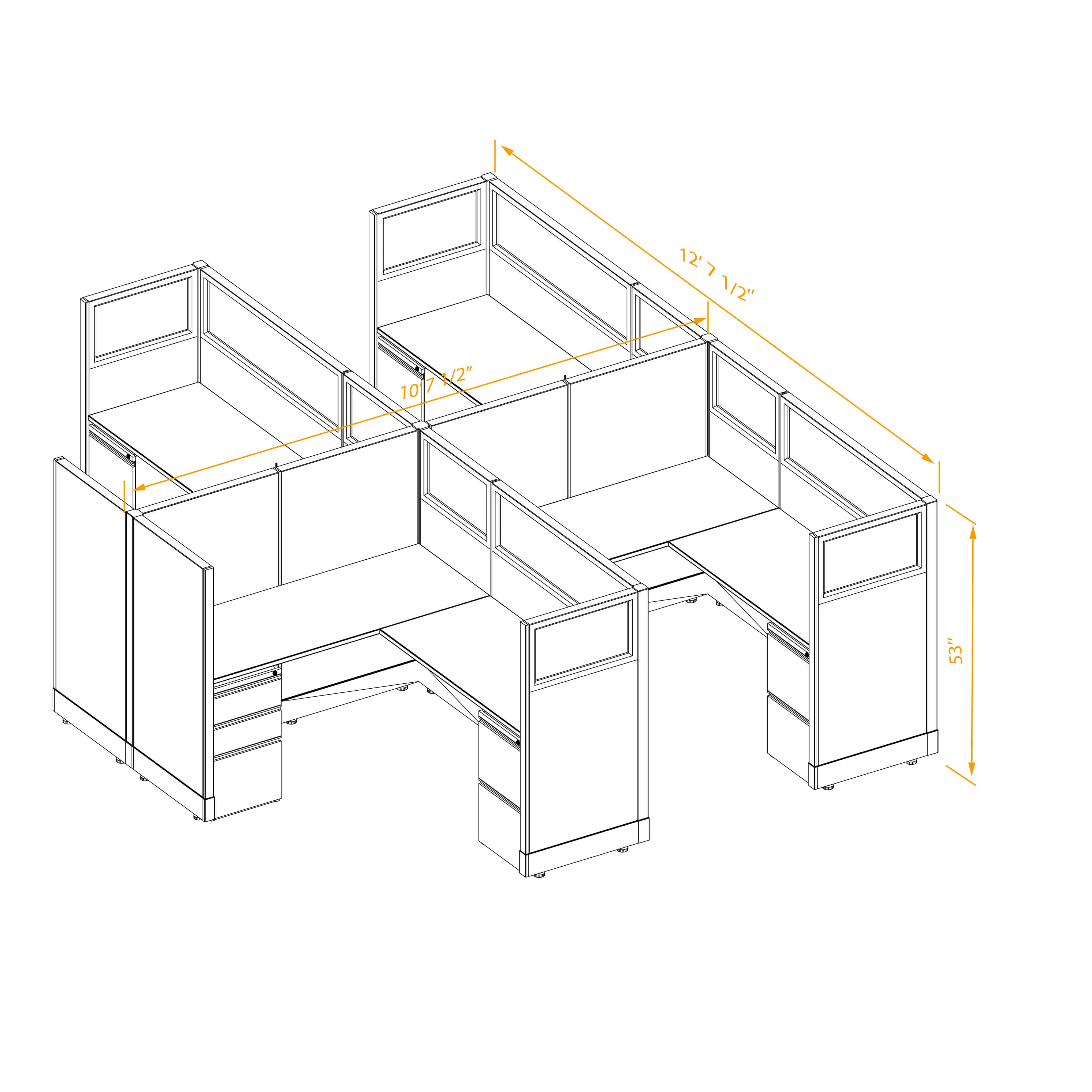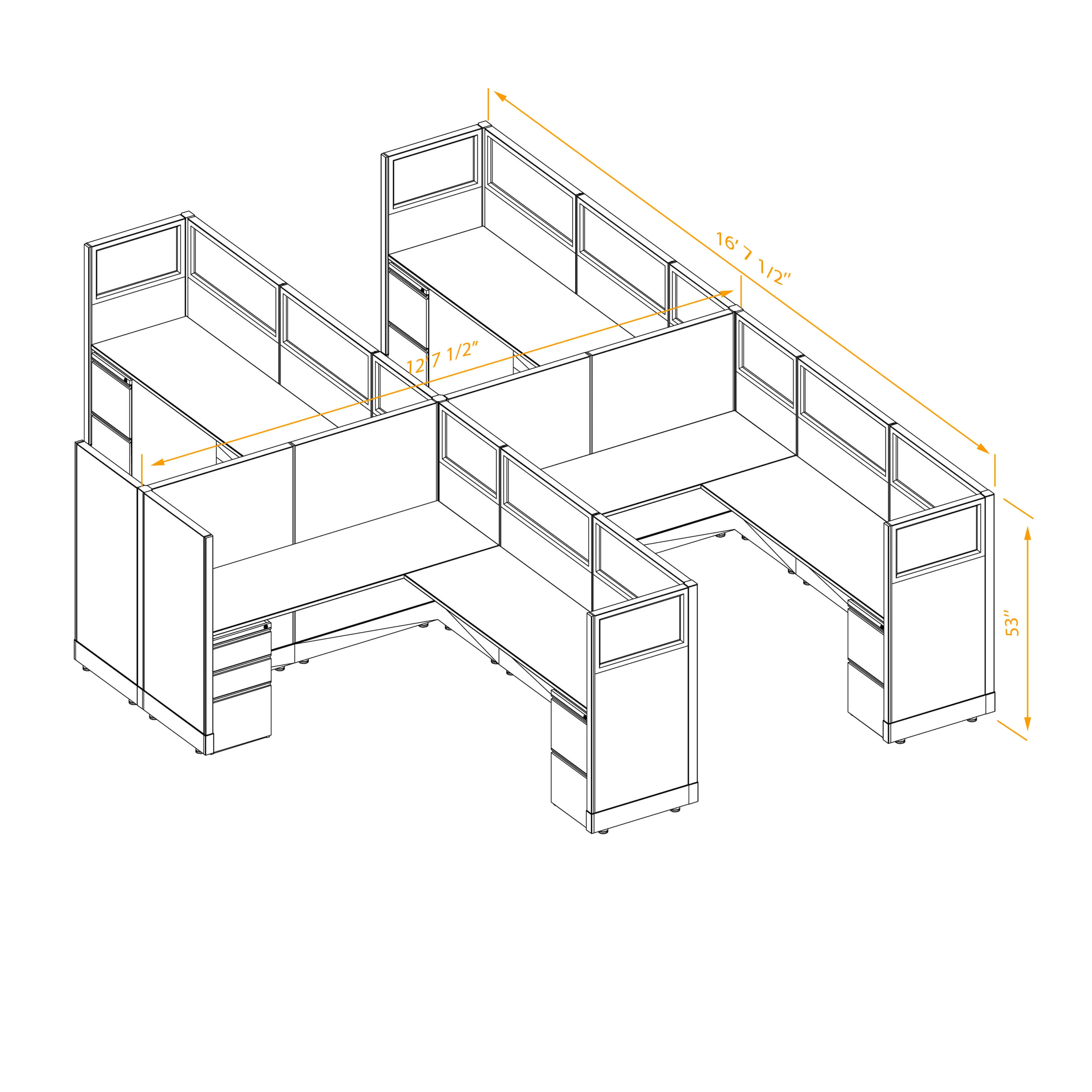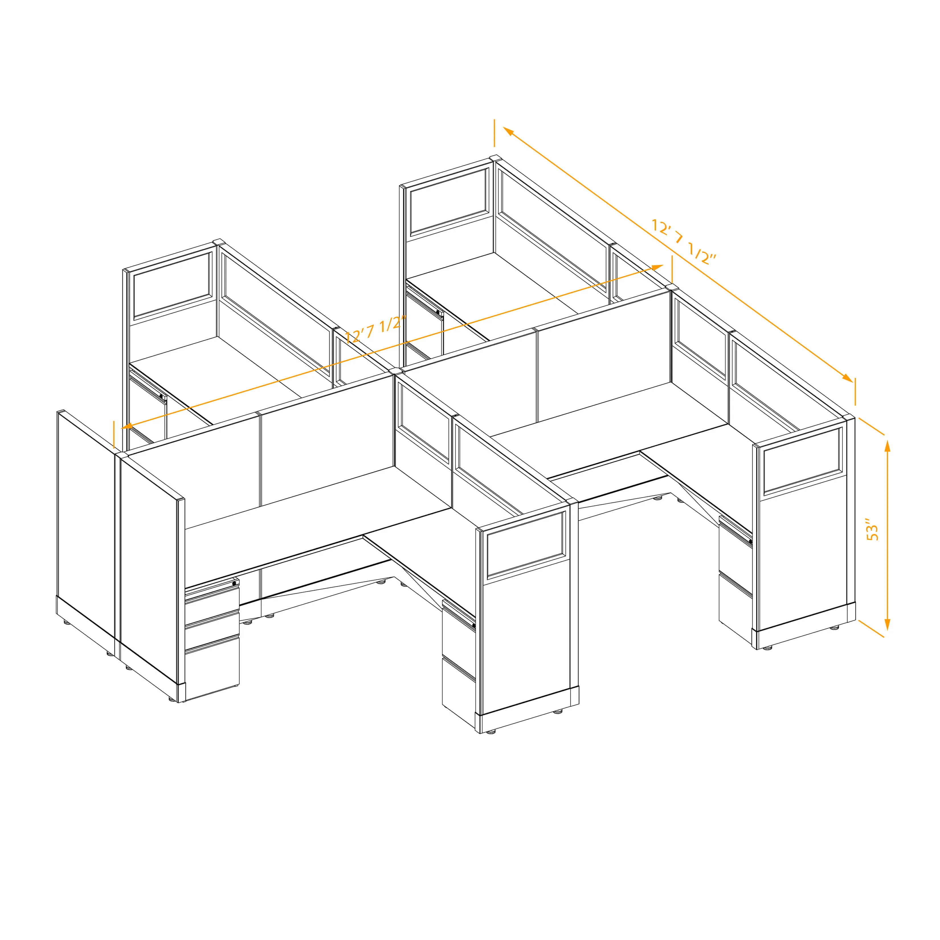 Partial Glass Office Cubicles 53H 4pack Cluster Non Powered
