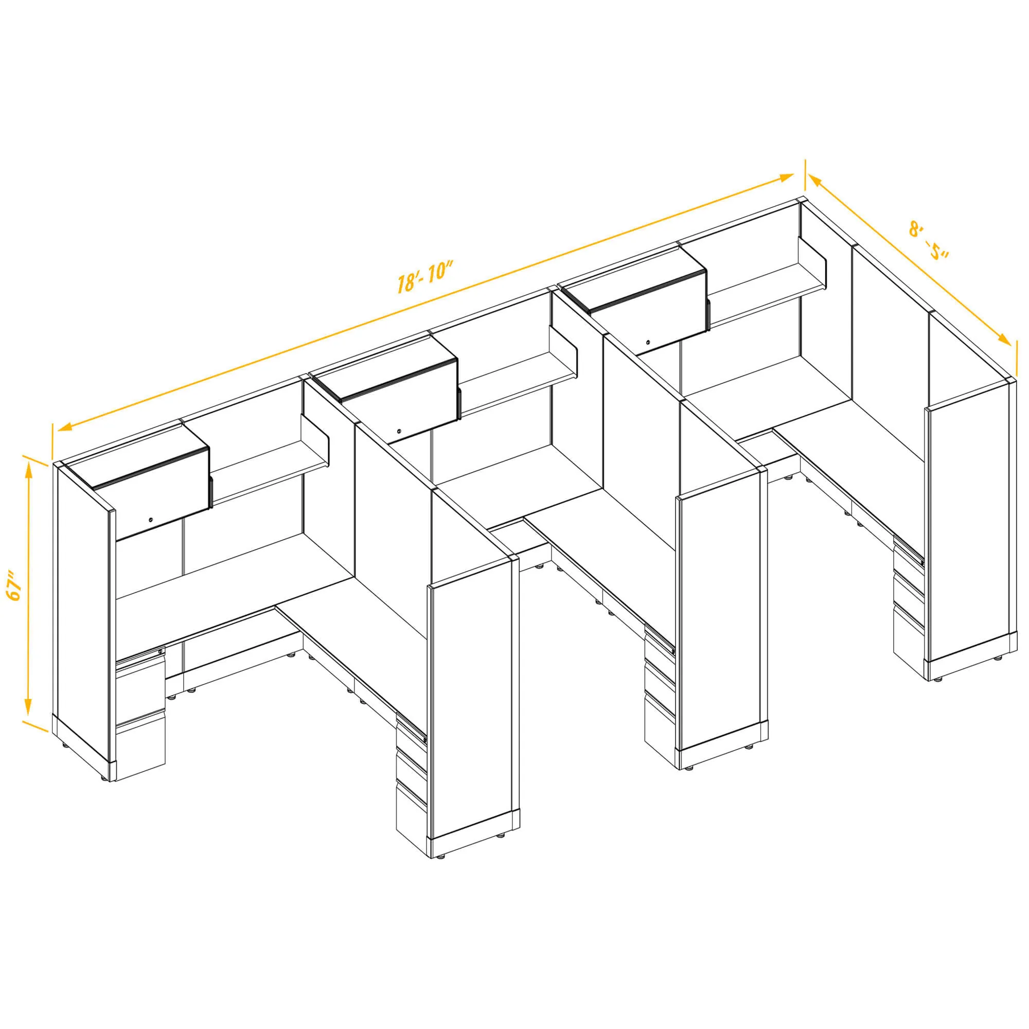 Modular Office Desk Furniture 67H 3pack Inline Non Powered