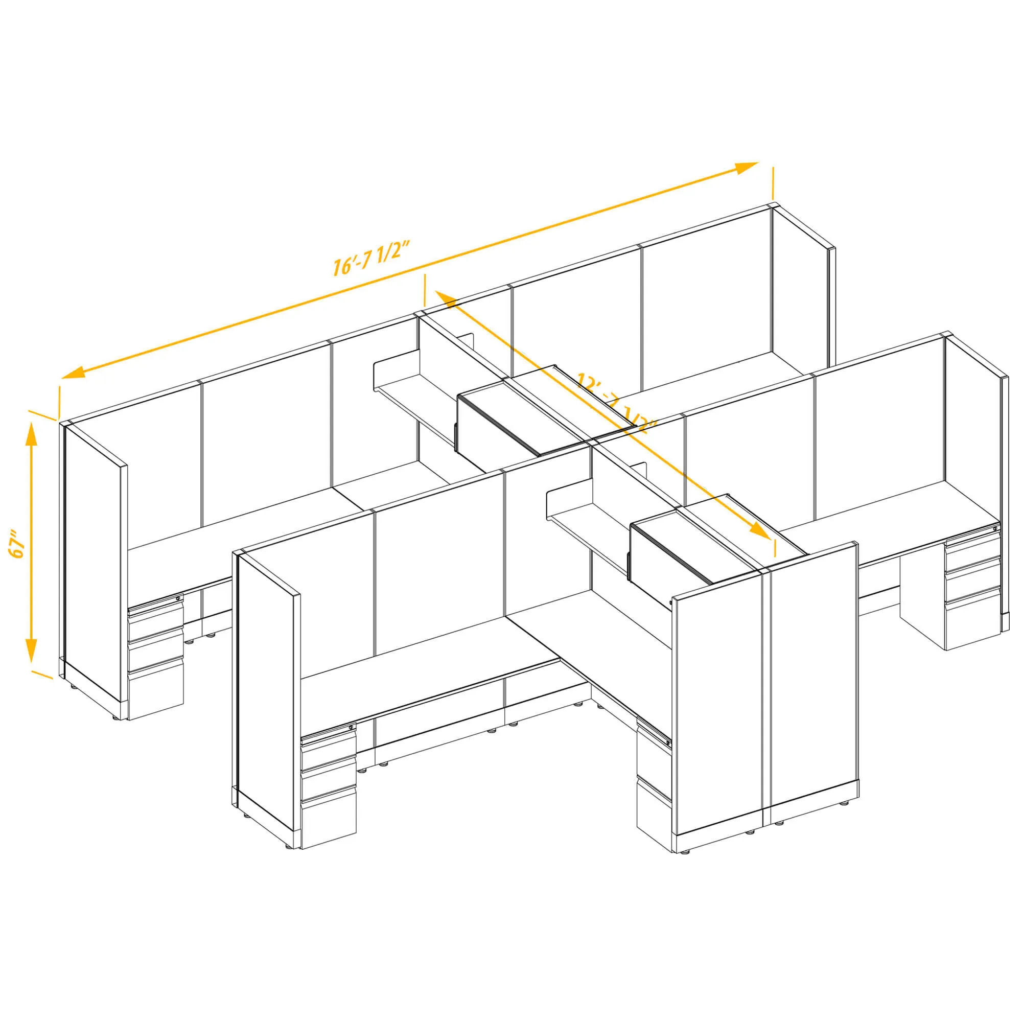 Modular Office Desk Furniture 67H 4pack Cluster Non Powered
