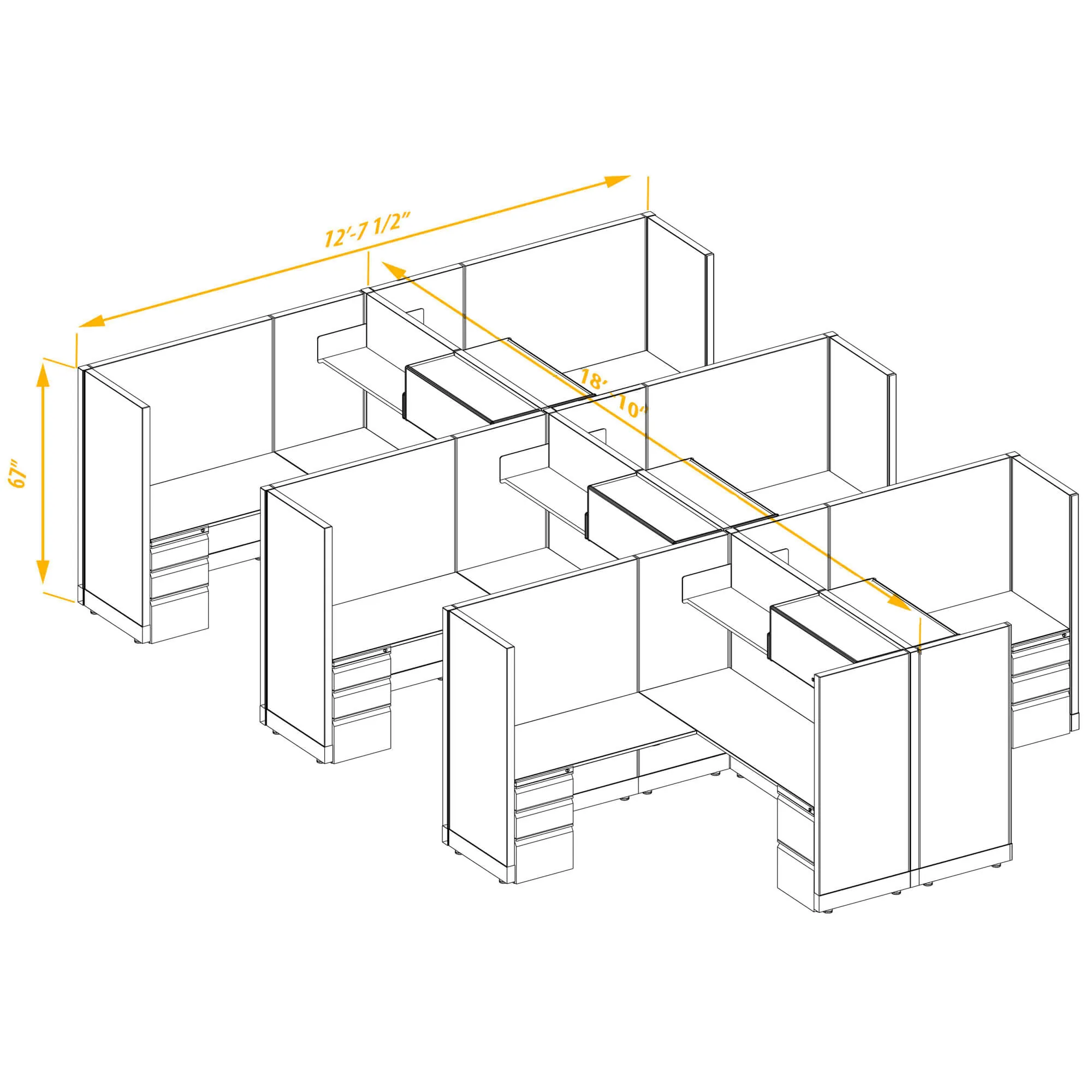 Modular Office Desk Furniture 67H 6pack Cluster Non Powered