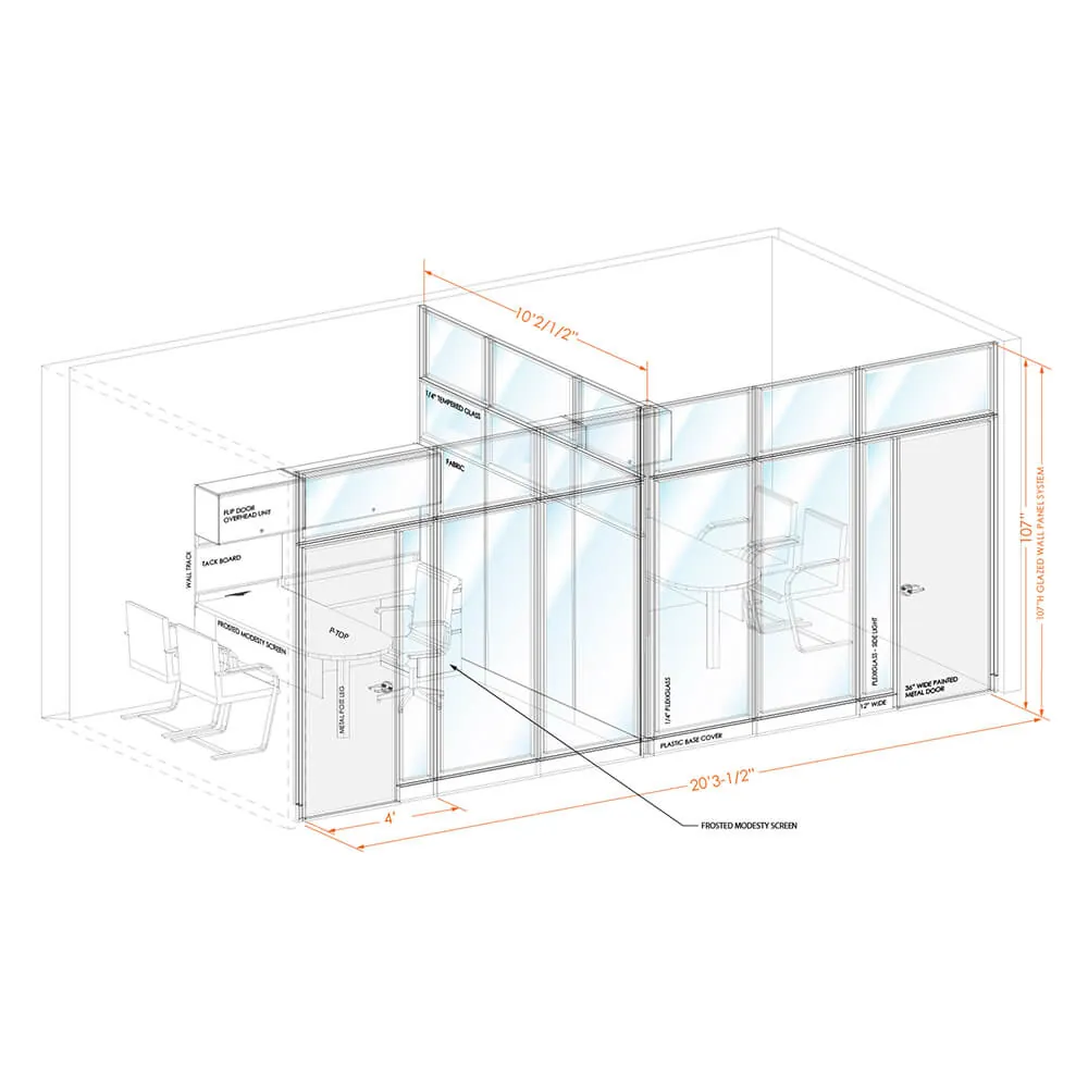 107”H interior dividing walls work great with 9ft ceilings for a nearly seamless floor-to-ceiling appearance, or for extra high ceilings where the extra footage can absorb some of the sound waves overhead. Need lower? Go Series SF-7!
