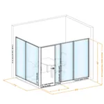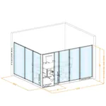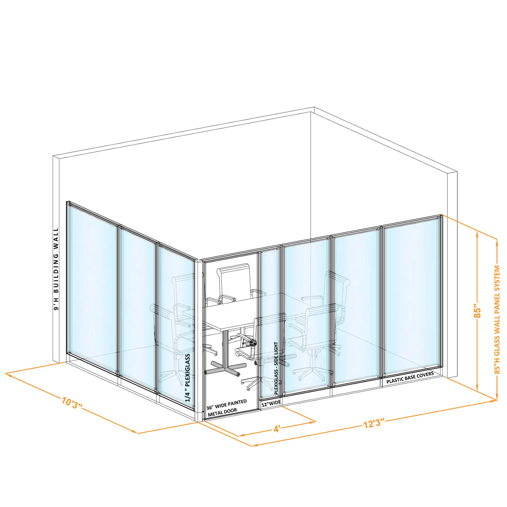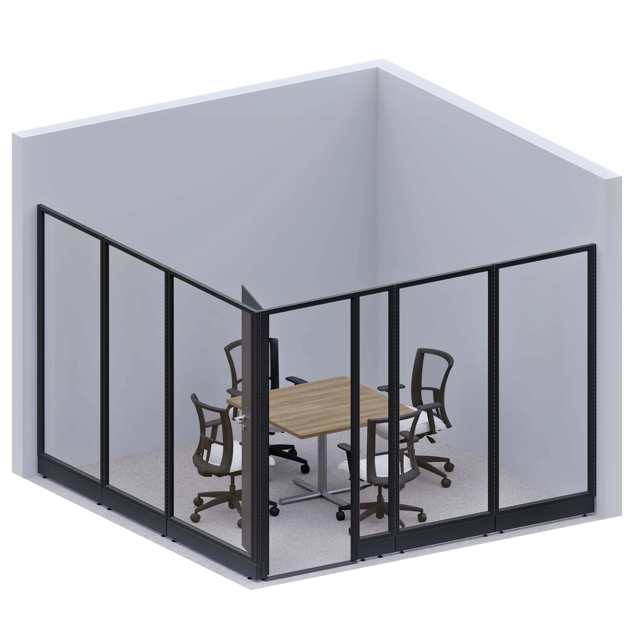 An L-Shaped configuration of glass conference room wall dividers with door completes a corner meeting space that can take advantage of existing architecture for the other two walls. Unlike permanent walls, movable partition walls are like cash in your pocket when you find yourself facing a commercial office move or reconfiguration.