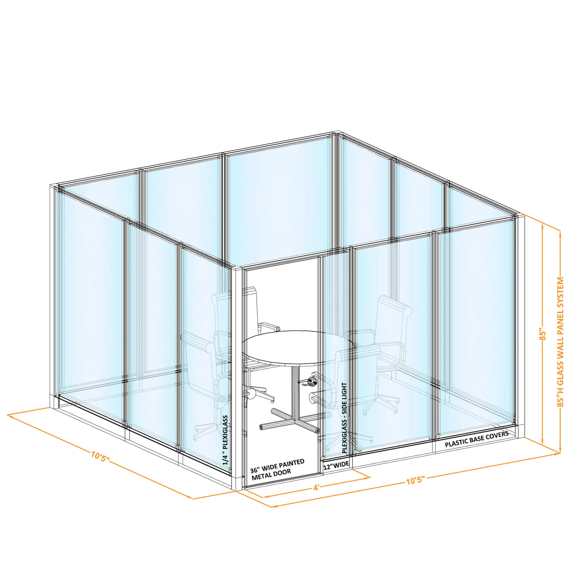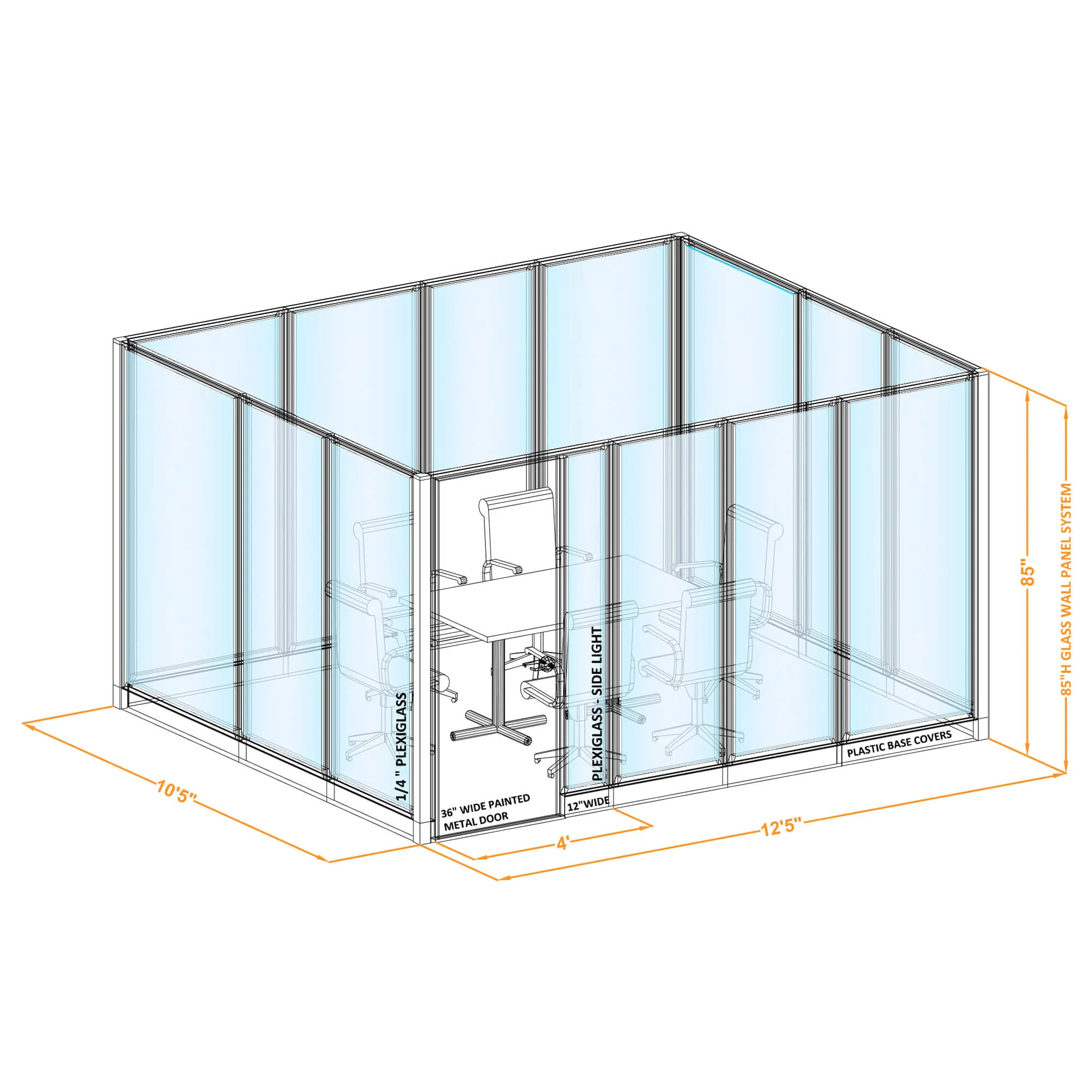 These stand-alone glass conference room wall partitions with door create a fully enclosed meeting space with no need for preexisting walls for support, so put them anywhere! They are built to last and are ideal for adaptive reuse. In contrast to sheetrock walls, you can move and reconfigure demountable walls as needed.
