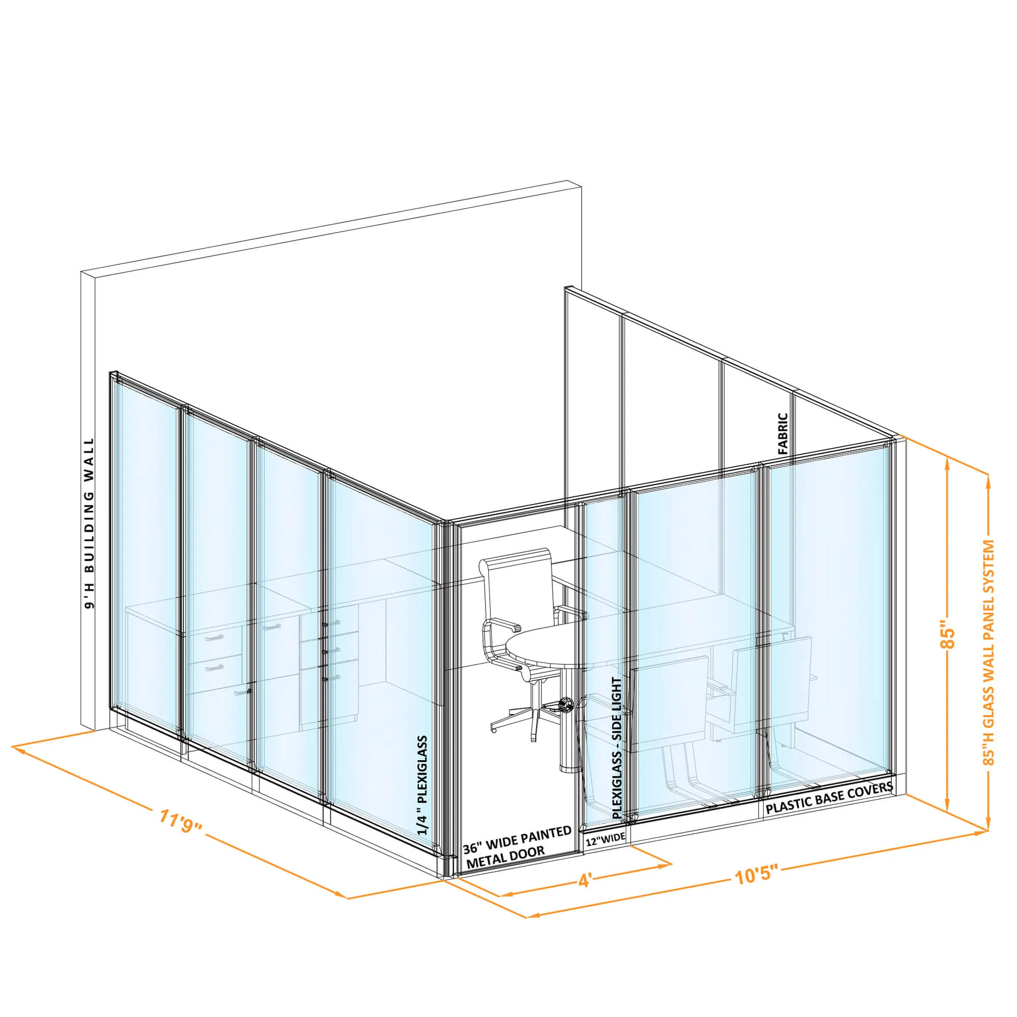 These interior office walls are not freestanding and must be connected to each other, run no longer than 10ft, and attach securely to a fixed wall with O2™ hardware components to stand safely. Perpendicular attachment at 90 degrees only.