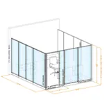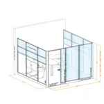 These modular office walls have precision engineered powder coated steel frames in black, white, or silver, and a painted-to-match metal office door with glass sidelight. The office door lock system is a lever lock set with keyed entry on the outside, and a thumbturn lock on the inside.