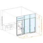 Estimated pricing is for non-powered, non-tackable office panels and metal office doors only, configured as pictured. Blue tinted areas on the 3D schematics indicate glass. Any desks, seating, or storage shown is sold separately.