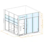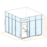 Estimated pricing is for non-powered, non-tackable office panels and metal office doors only, configured as pictured. Blue tinted areas on the 3D schematics indicate glass. Any desks, seating, or storage shown is sold separately.