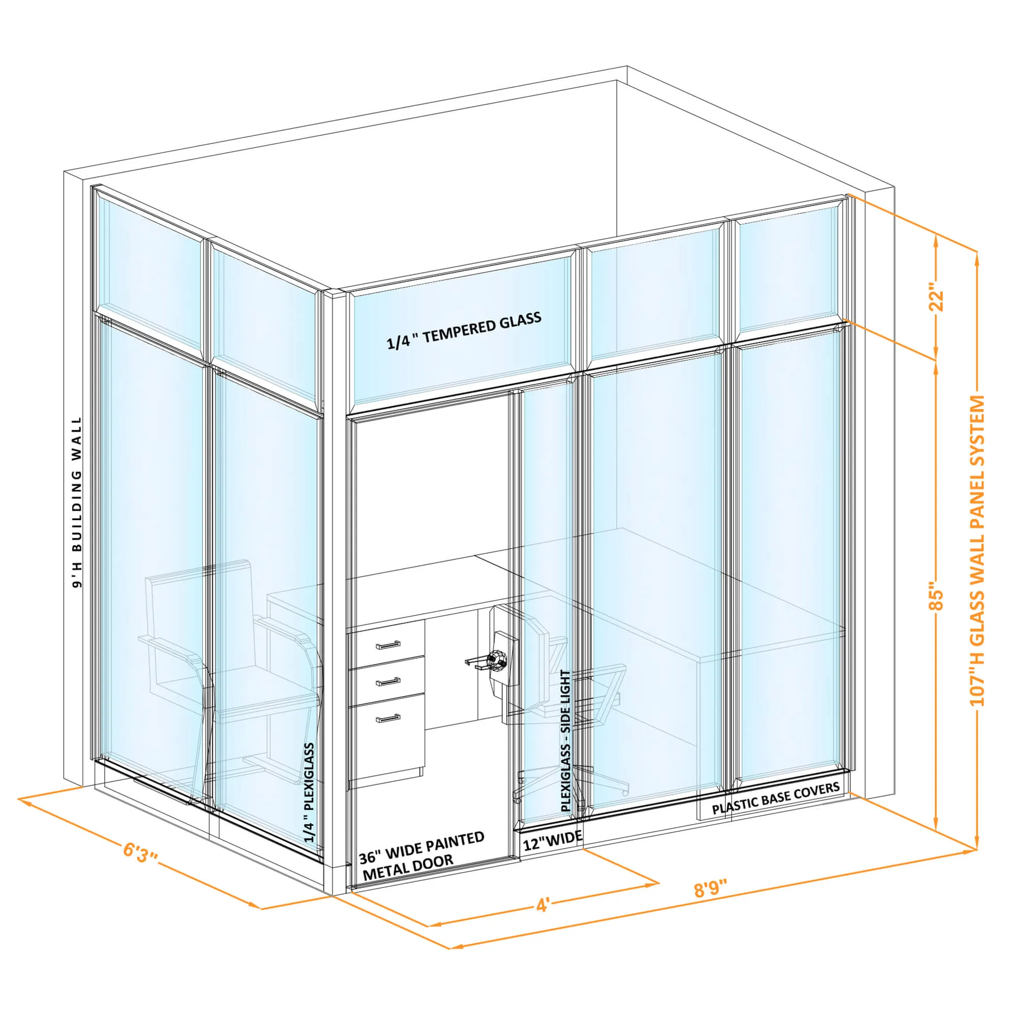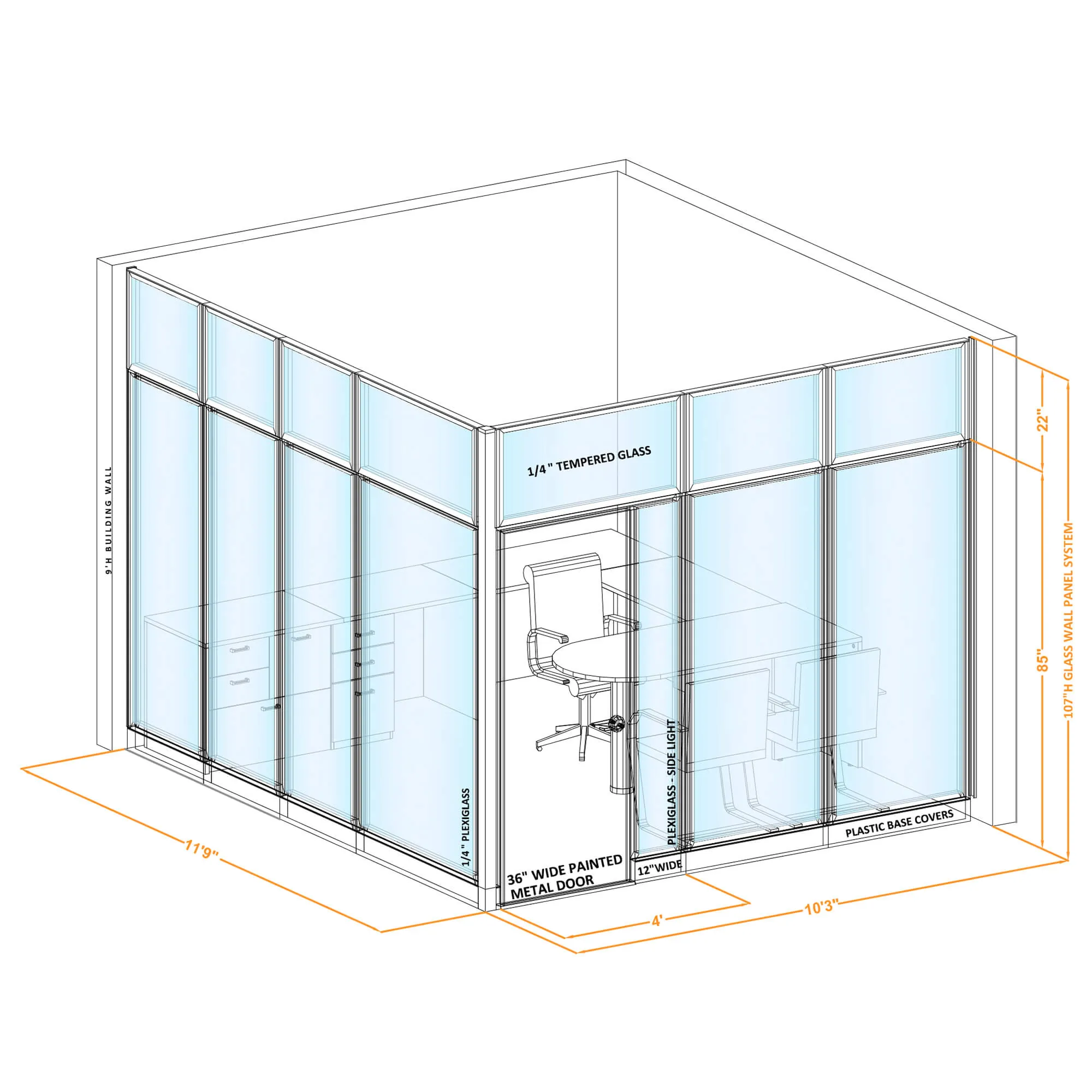 107”H interior dividing walls work great with 9ft ceilings for a nearly seamless floor-to-ceiling appearance, or for extra high ceilings where the extra footage can absorb some of the sound waves overhead. Need lower? Go Series 7!